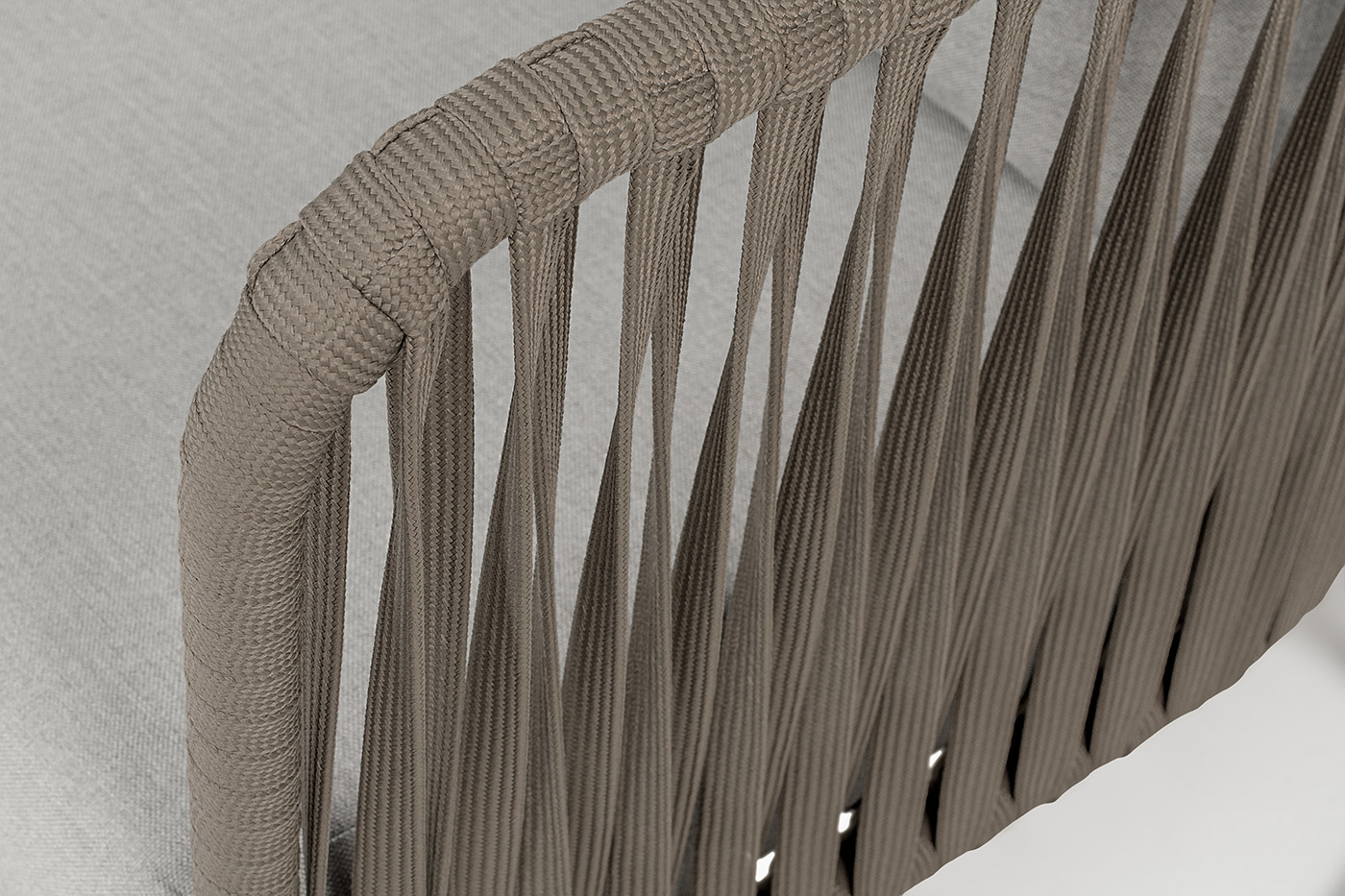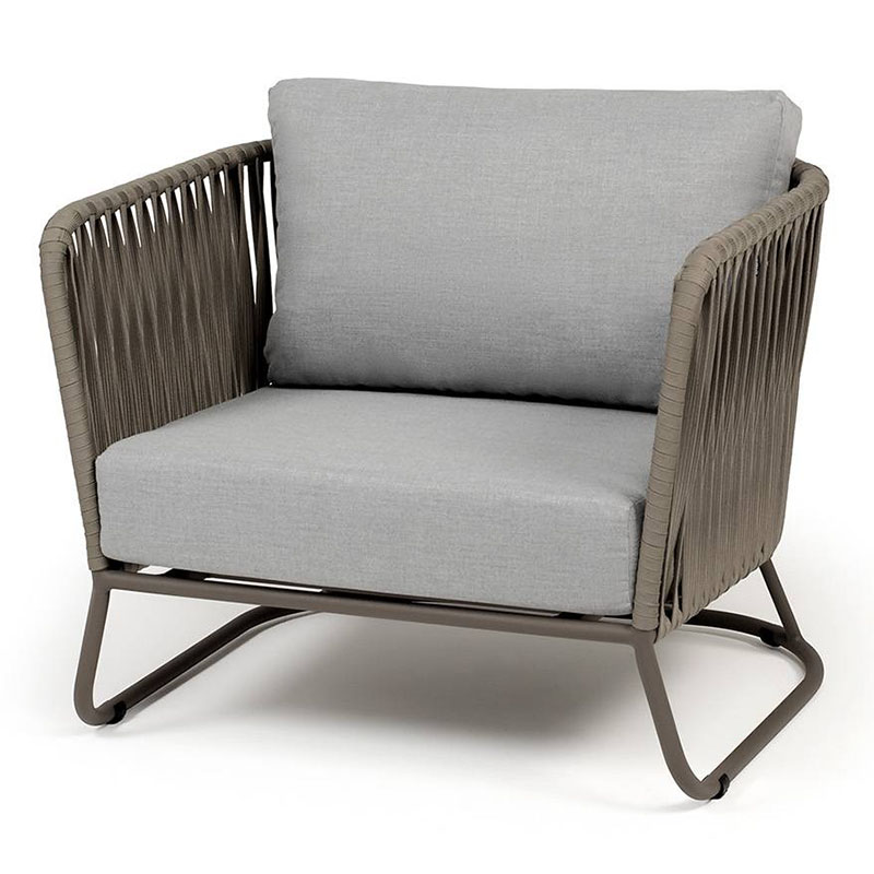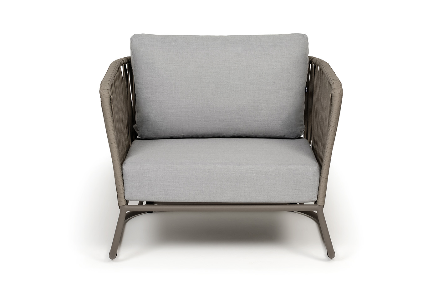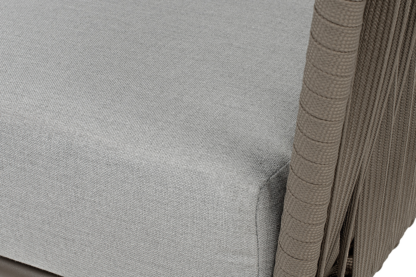 "Багамы" кресло плетеное из роупа, каркас алюминий бежево-серый (RAL7006) муар, роуп серо-коричневый 23мм, ткань светло-серая