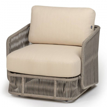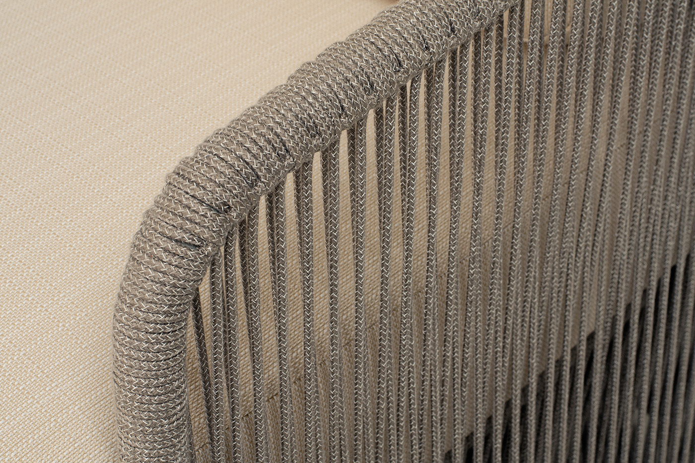 "Альбано" кресло плетеное из роупа, каркас алюминий светло-серый (RAL7035) муар, роуп серый меланж круглый, ткань Mossle светло-бежевая