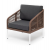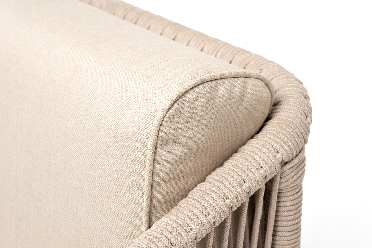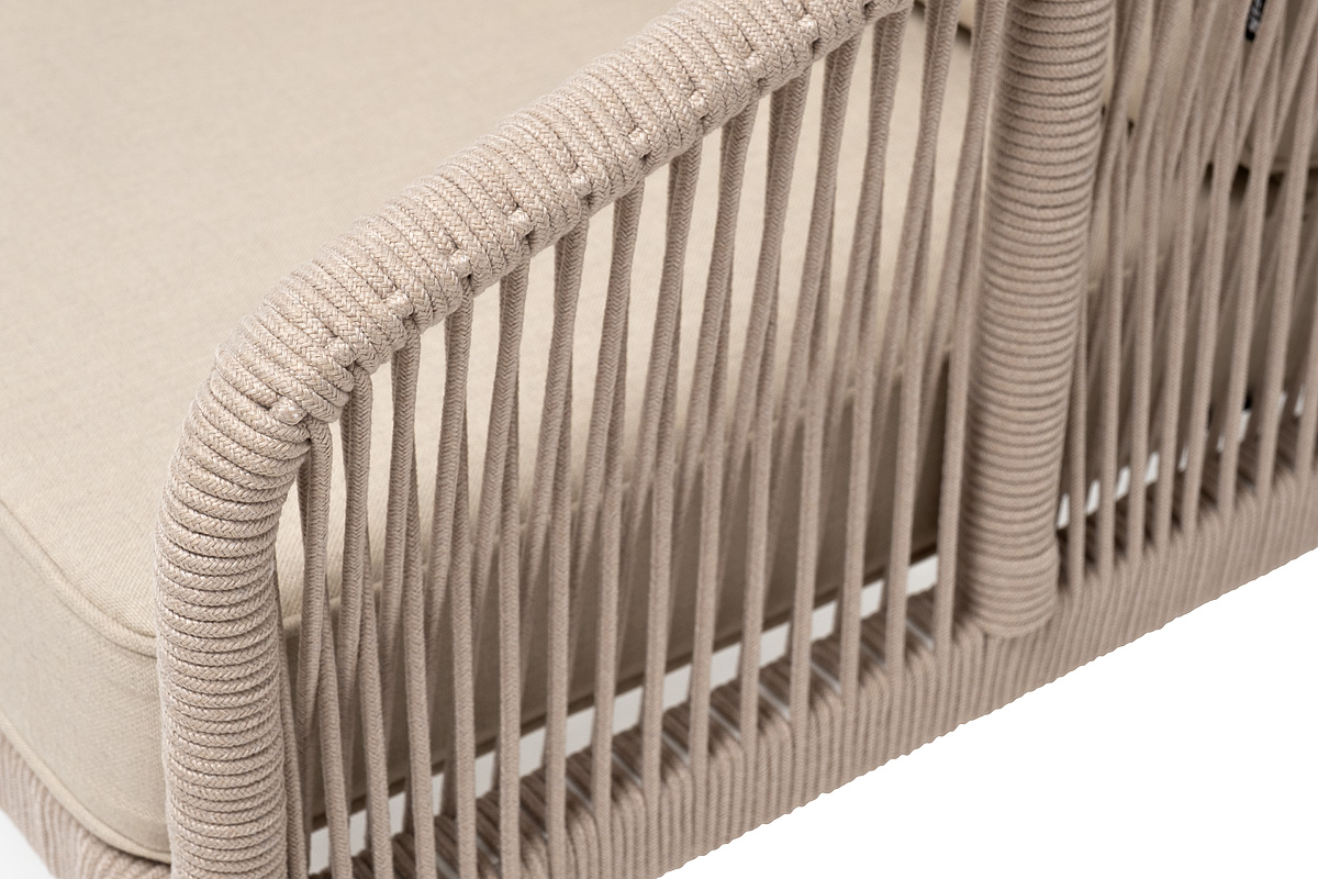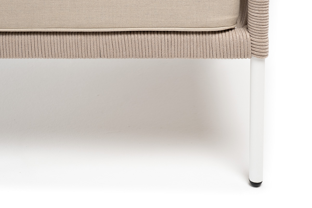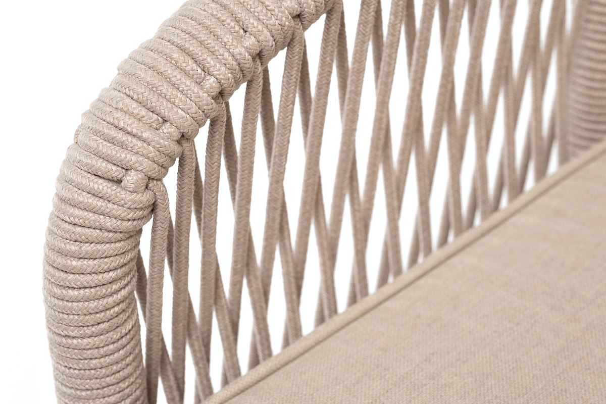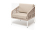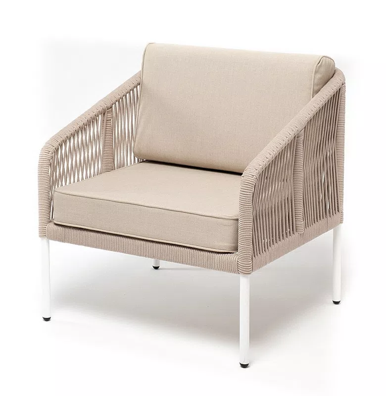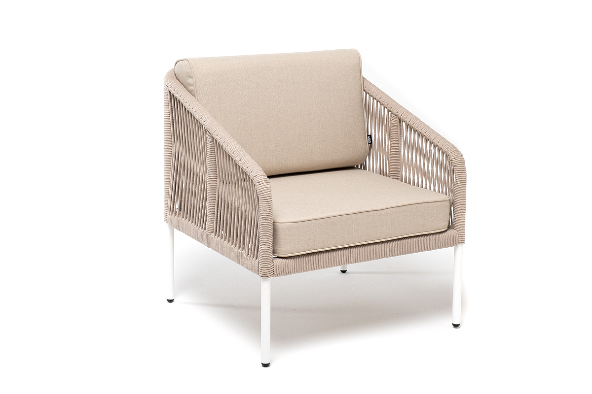 "Канны" кресло плетеное из роупа, каркас алюминий белый муар, роуп бежевый круглый, ткань бежевая 15052, высота посадки 45 см