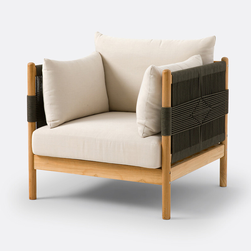 • Конструкция из массива тикового дерева, сертифицированная по стандарту FSC®, с масляной отделкой, с сиденьем из ажурных планок