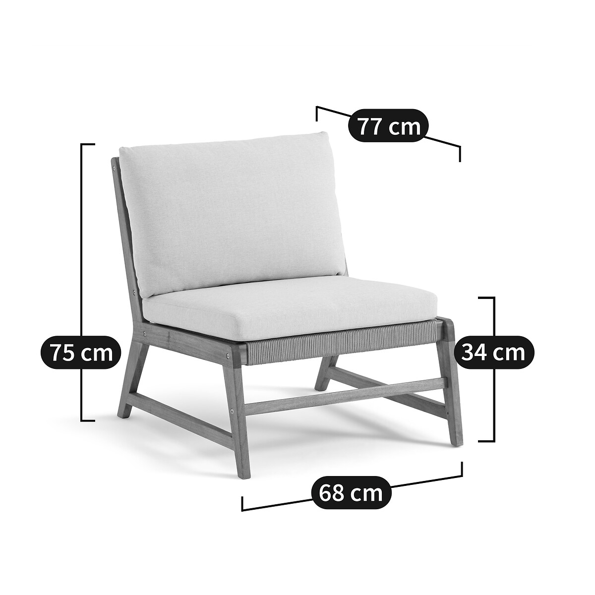 • Сиденье и спинка из веревки из плетеного полиэстера бежевого цвета.