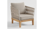 "Диего" кресло плетеное из роупа, основание дуб, каркас алюминий белый муар, роуп бежевый круглый, ткань бежевая 035