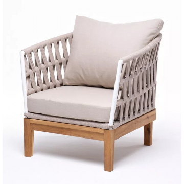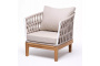 "Диего" кресло плетеное из роупа, основание дуб, каркас алюминий светло-серый (RAL7035) шагрень, роуп бежевый круглый, ткань бежевая 15052