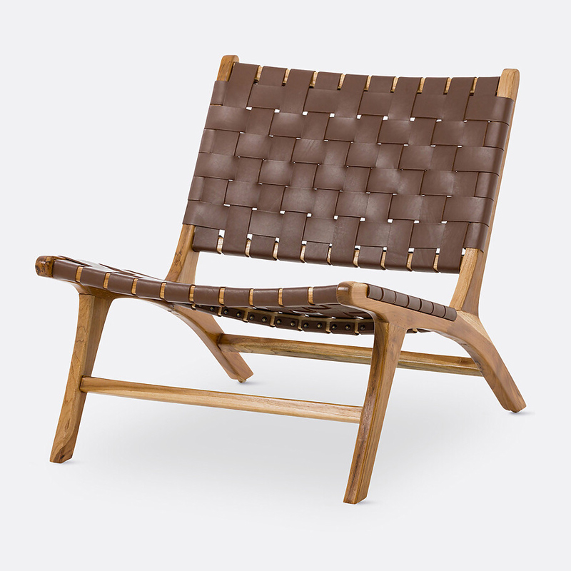 Кресло-лаундж из тика и кожи Amanda единый размер каштановый