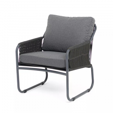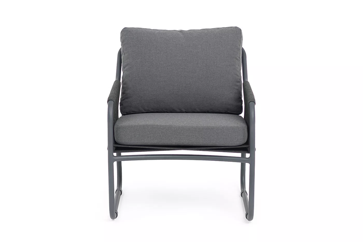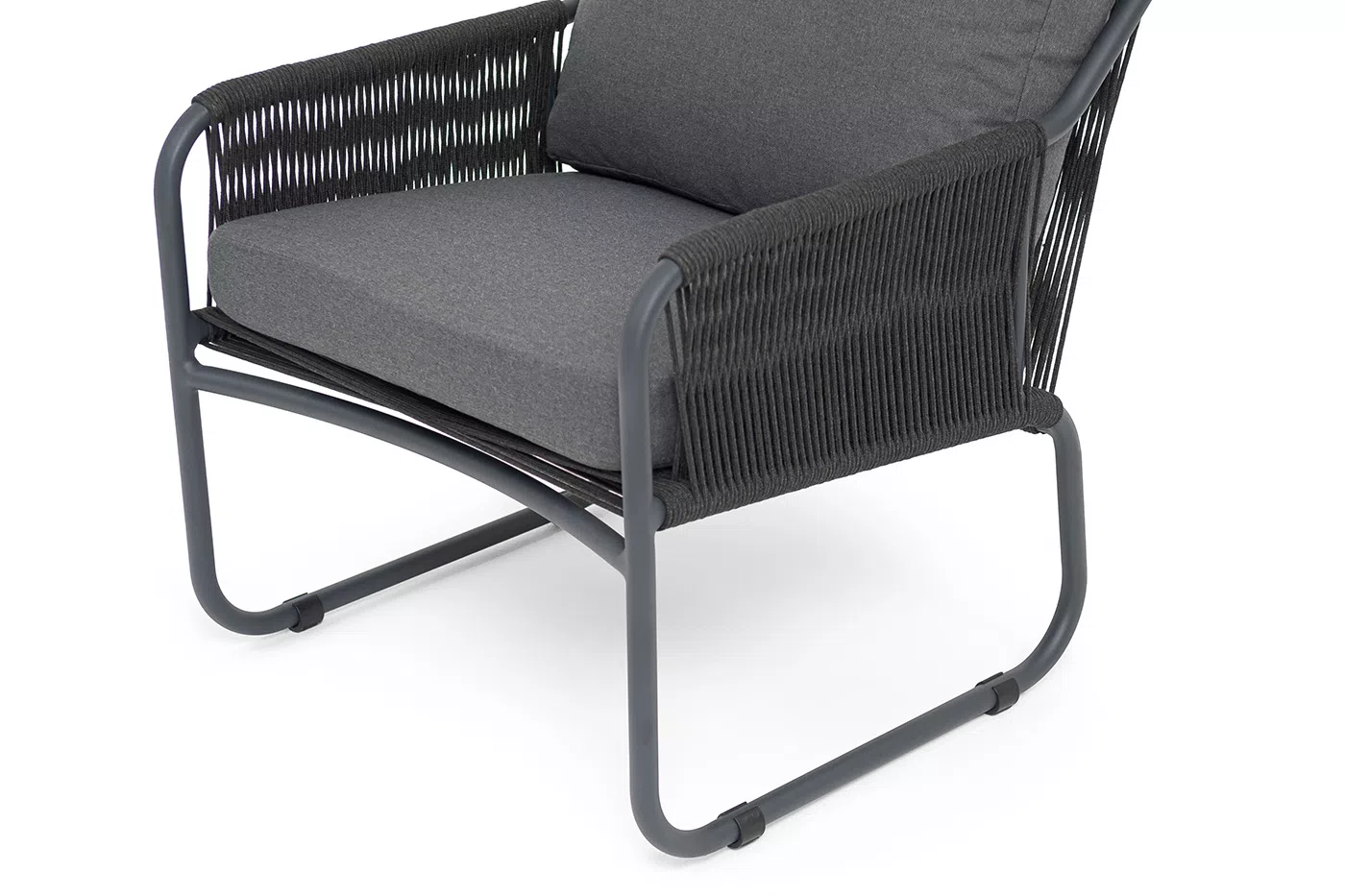 "Ането" кресло плетеное из роупа, каркас алюминий темно-серый (RAL7024) муар, роуп темно-серый круглый, ткань темно-серая 027