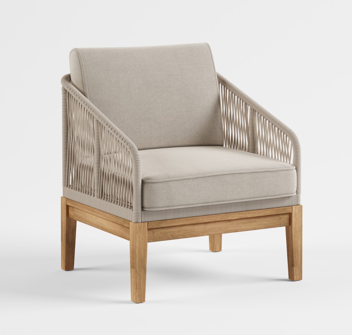 "Канны" кресло плетеное из роупа, основание дуб, роуп бежевый круглый, ткань бежевая 15052