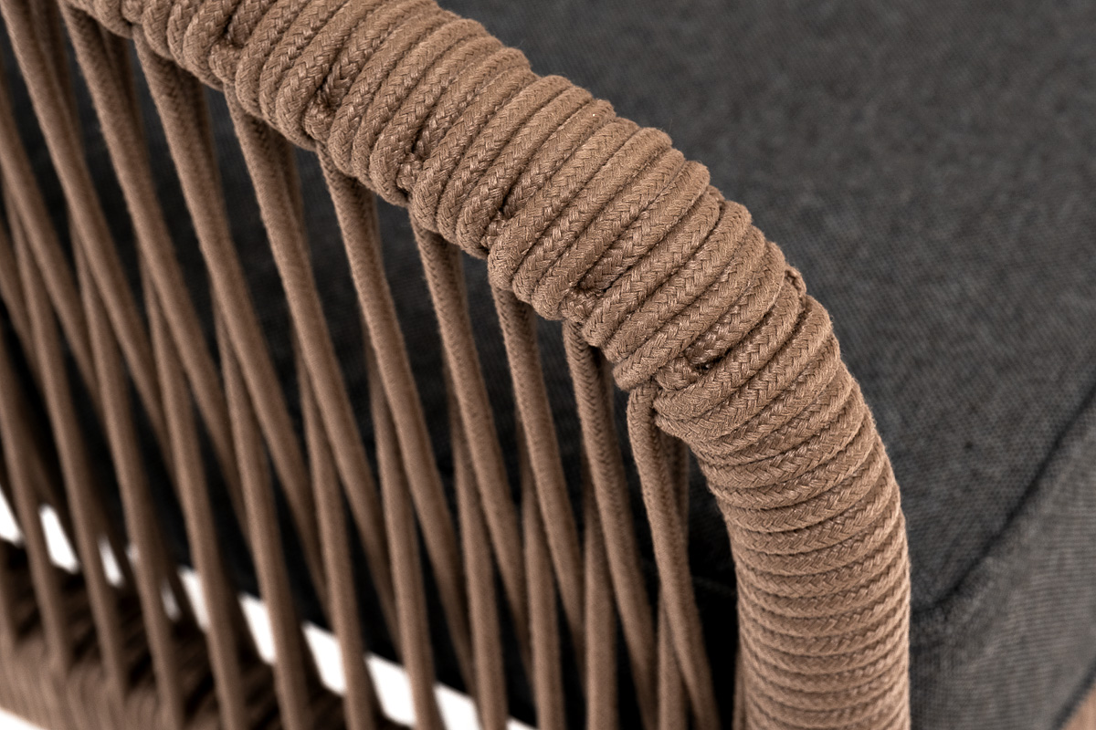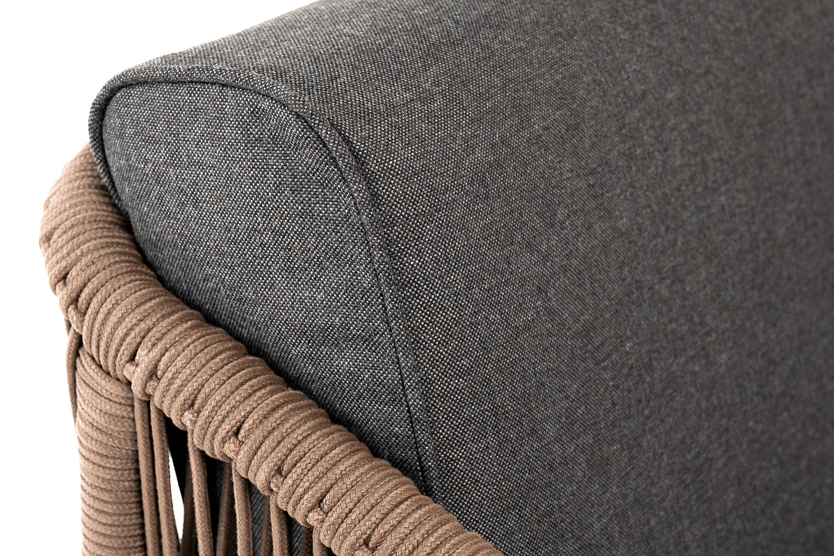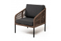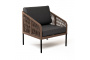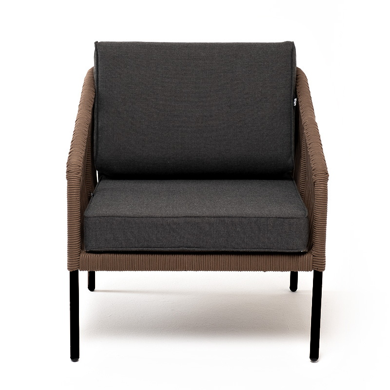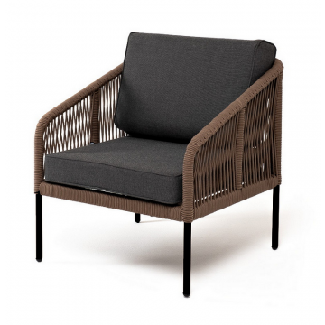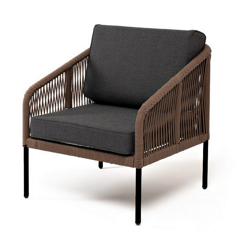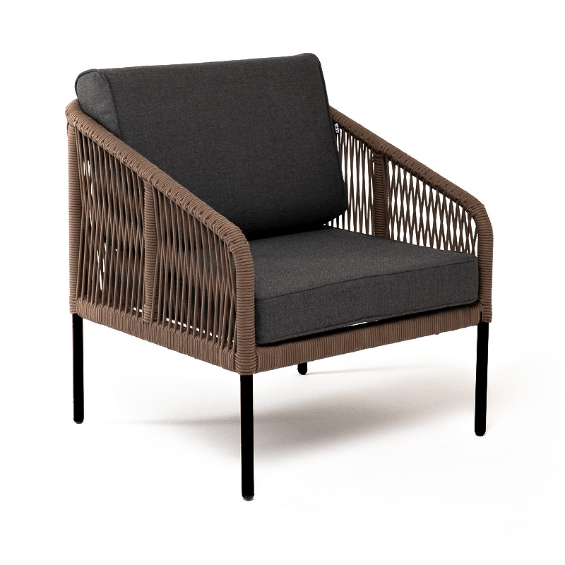 "Канны" кресло плетеное из роупа (узелки), каркас алюминий темно-серый (RAL7024) муар, роуп темно-серый круглый, ткань темно-серая 027