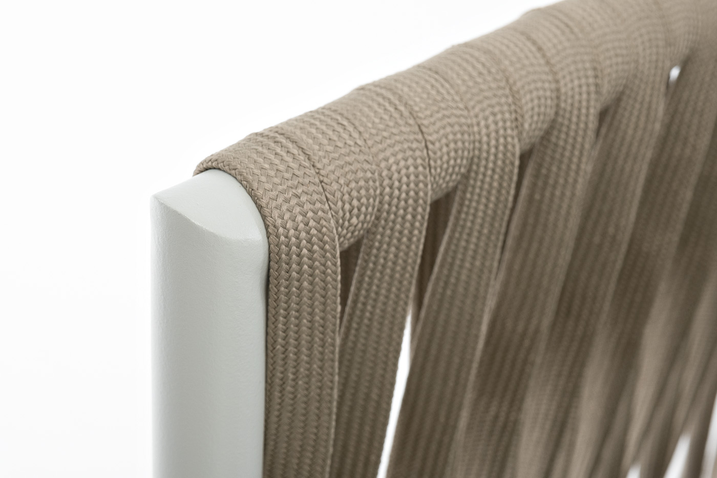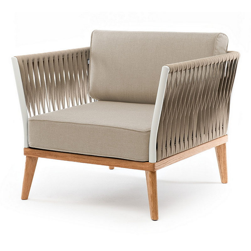 "Касабланка" кресло плетеное из роупа, основание дуб, роуп серо-коричневый 23мм, ткань серая
