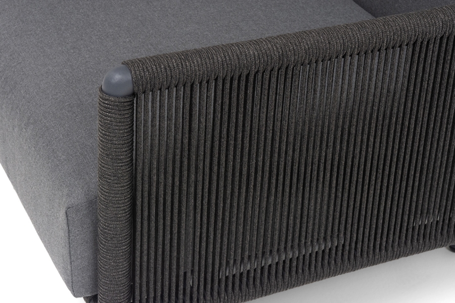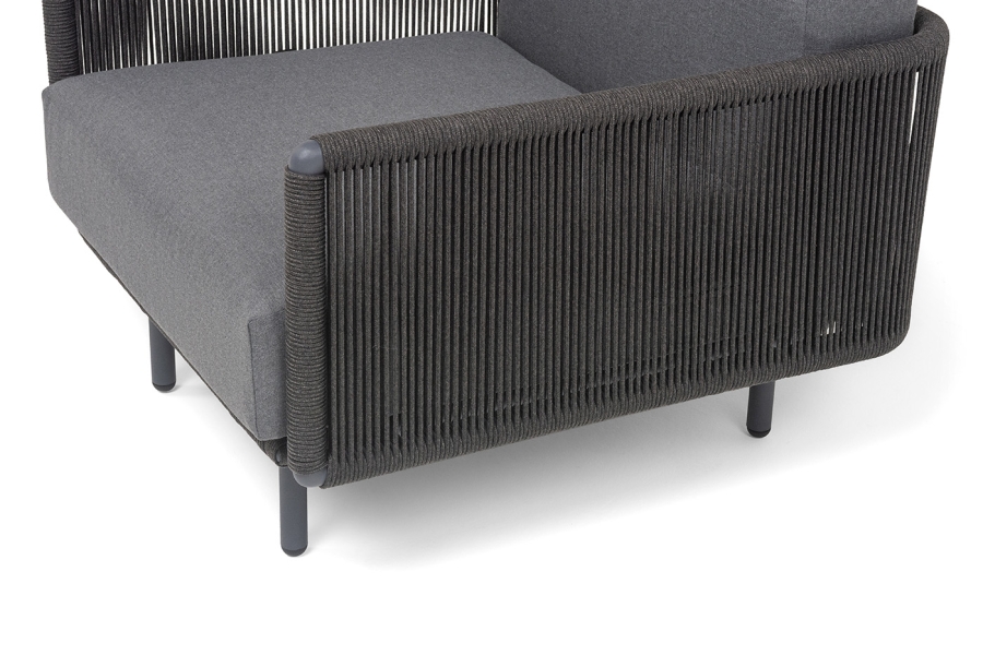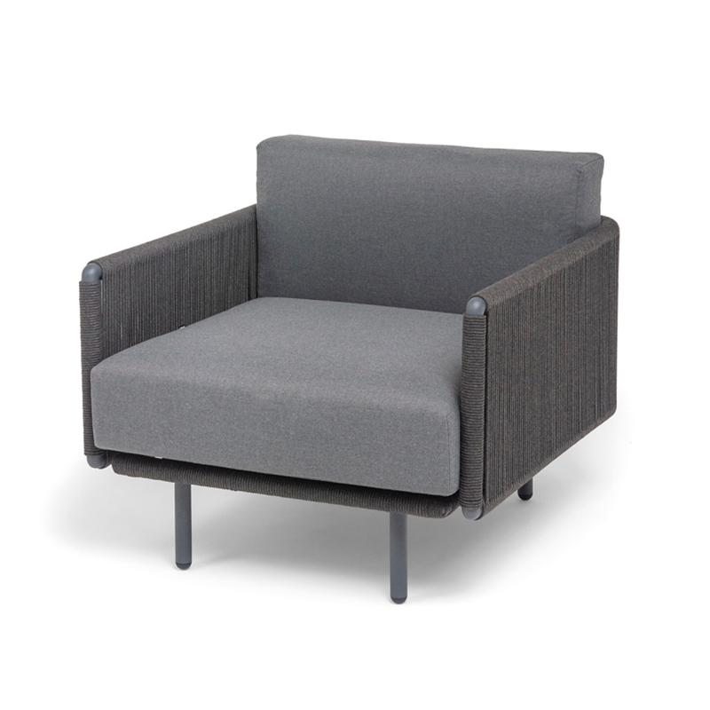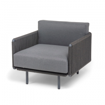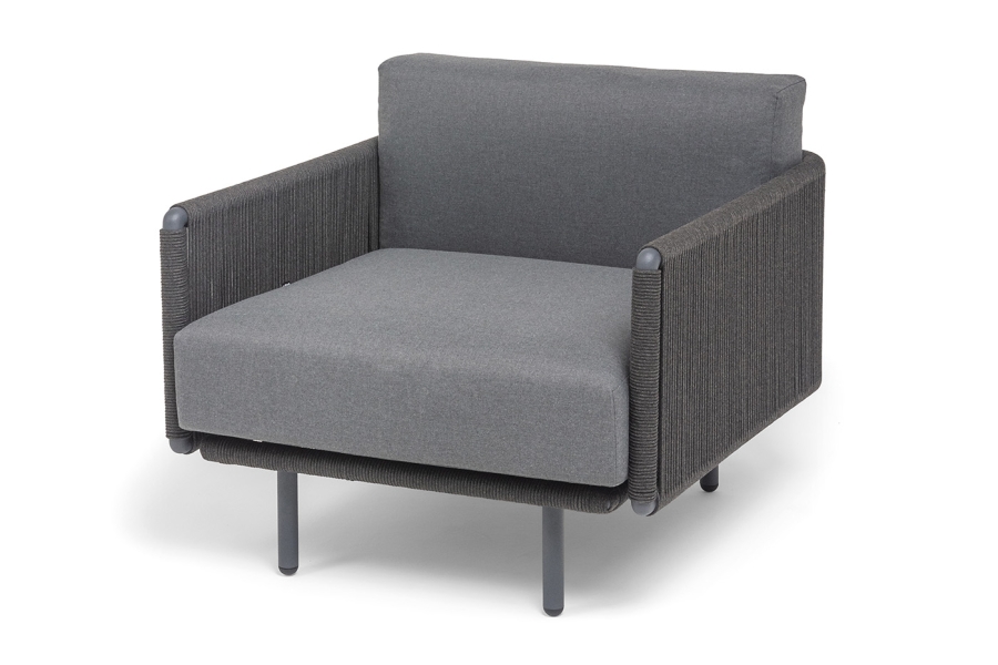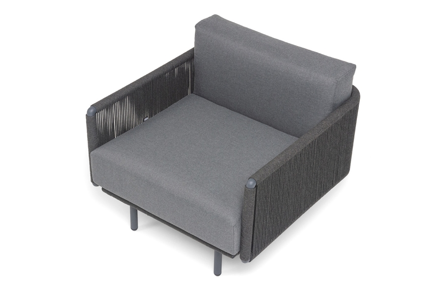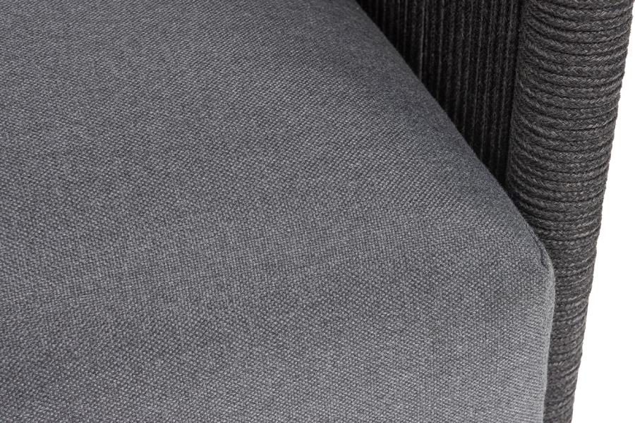 "Джелло" кресло плетеное из роупа, каркас алюминий темно-серый (RAL7024) муар, роуп темно-серый круглый, ткань темно-серая 027