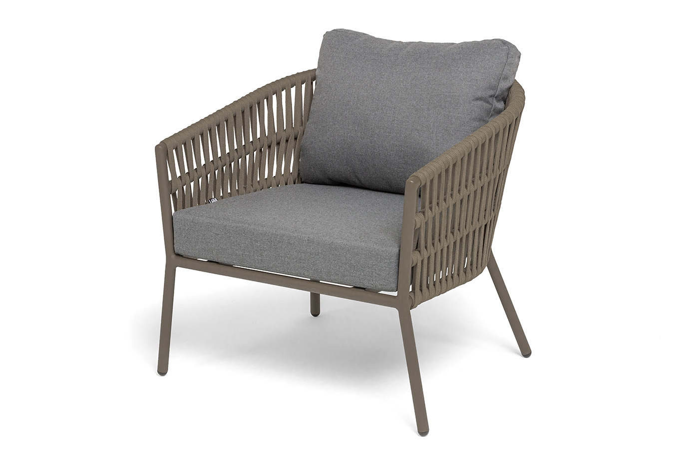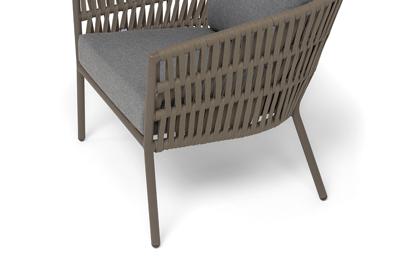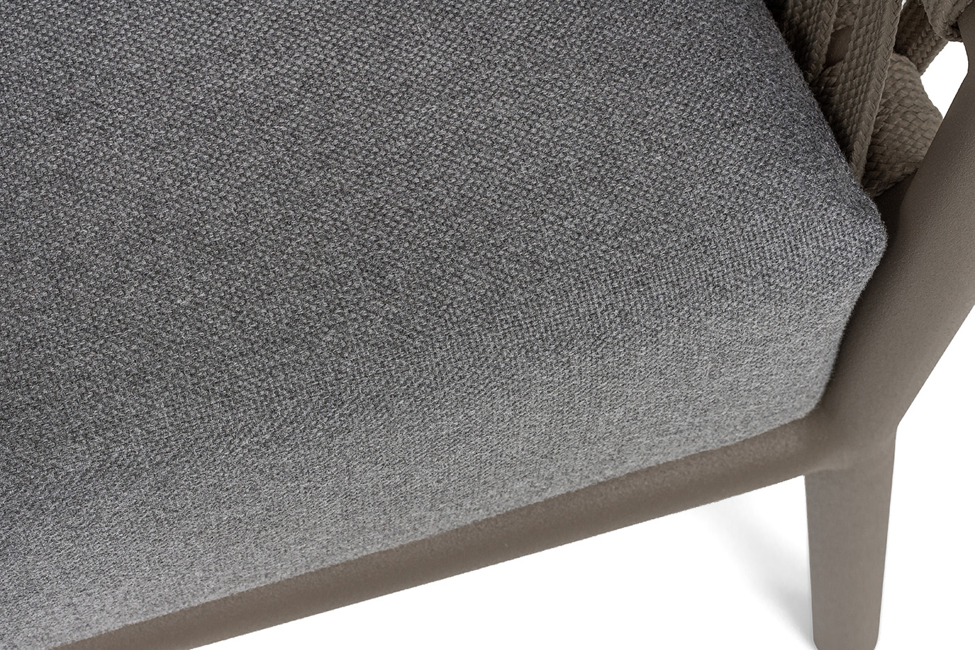 "Комо" кресло плетеное из роупа, каркас алюминий бежево-серый (RAL7006) муар, роуп серо-коричневый 23мм, ткань темно-серая 027