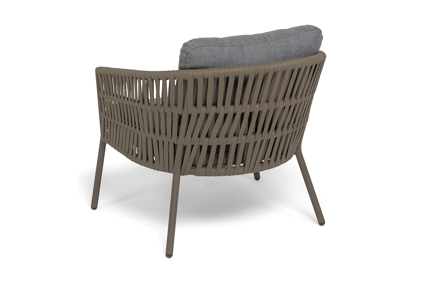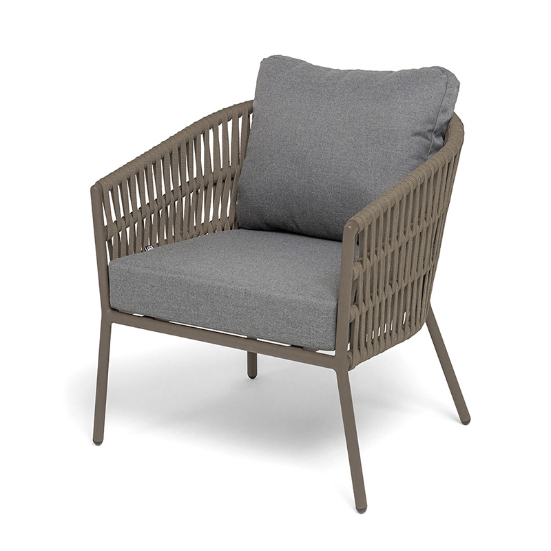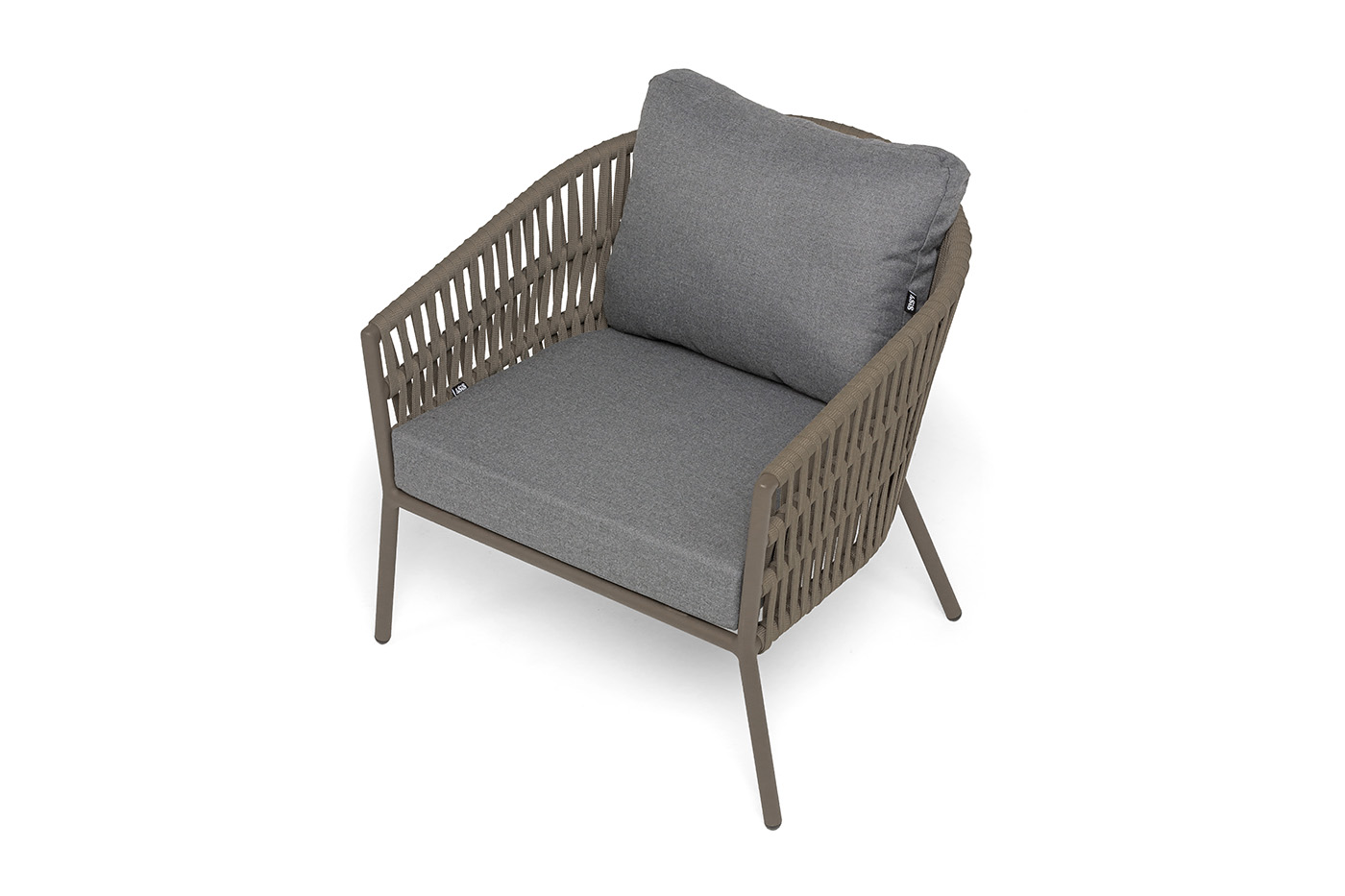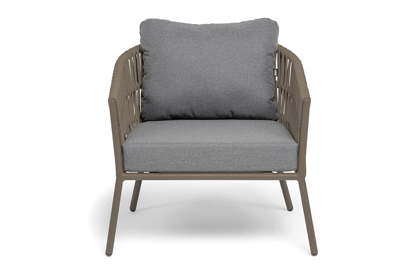 "Комо" кресло плетеное из роупа, каркас алюминий бежево-серый (RAL7006) муар, роуп серо-коричневый 23мм, ткань темно-серая 027