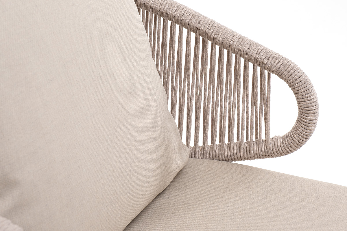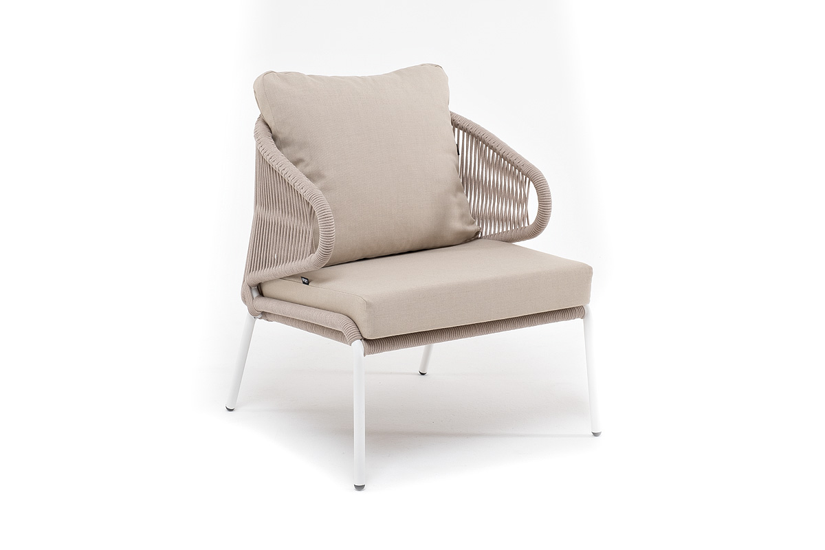 "Милан" кресло плетеное из роупа, каркас алюминий белый муар, роуп бежевый круглый, ткань бежевая 15052