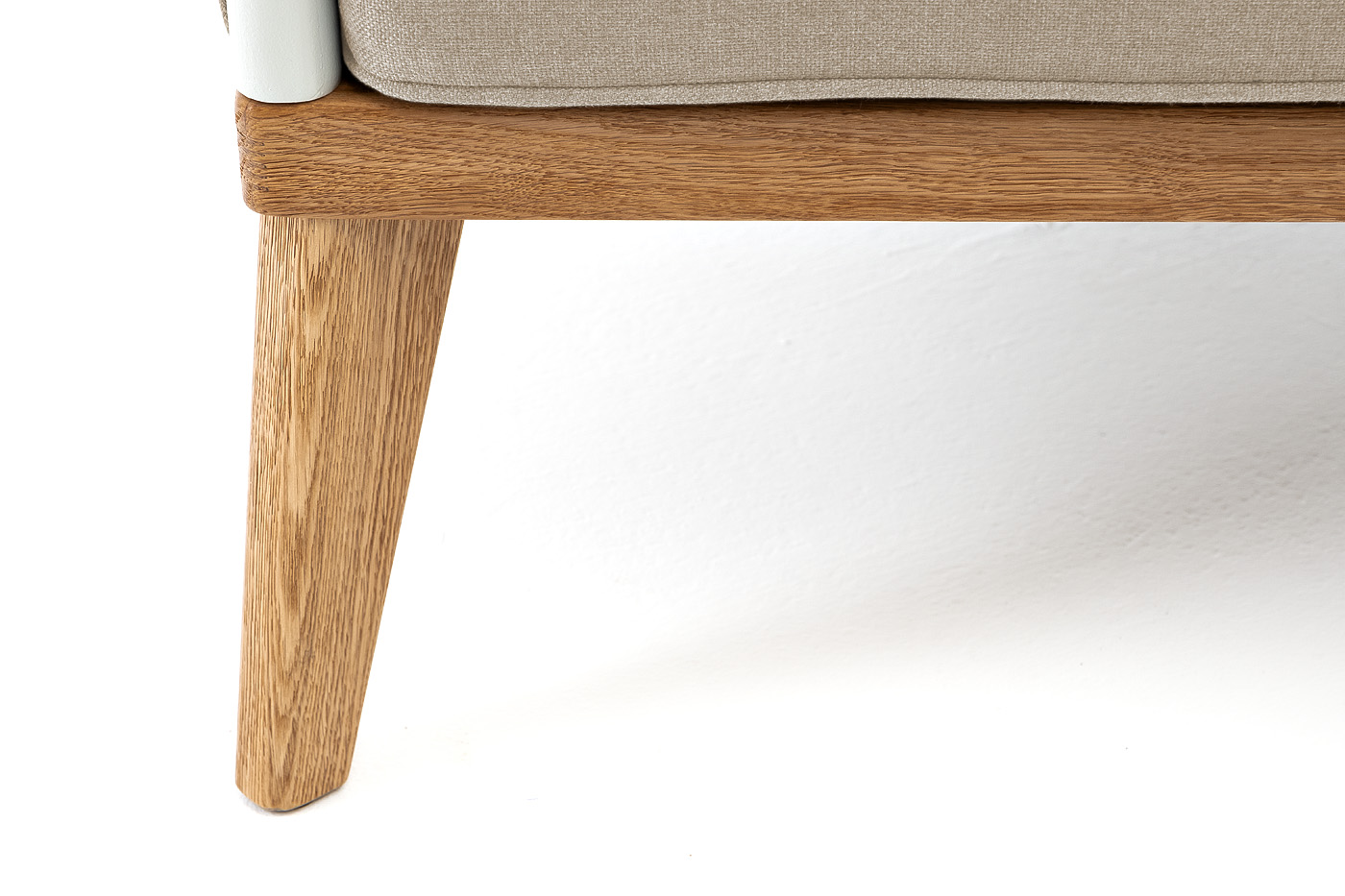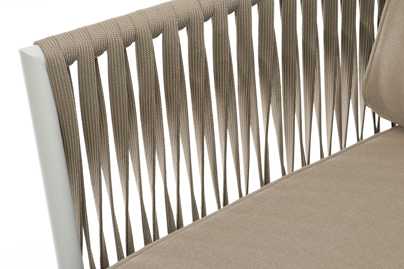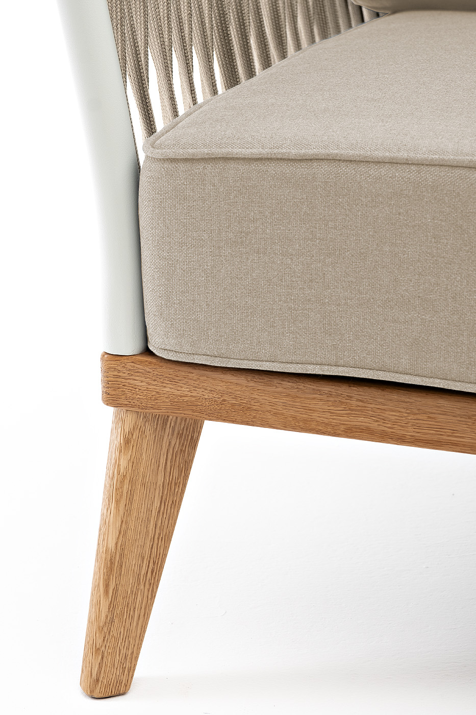 "Касабланка" кресло плетеное из роупа, основание дуб, каркас алюминий светло-серый (RAL7035) муар, роуп серо-коричневый 23мм, ткань бежевая 15052
