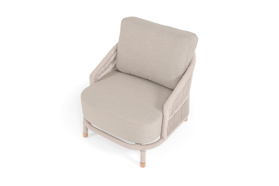 "Верона" кресло плетеное из роупа, каркас алюминий белый муар, роуп бежевый круглый, ткань бежевая 15052