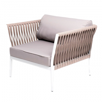"Касабланка" кресло плетеное из роупа, каркас алюминий светло-серый (RAL7035) муар, роуп серо-коричневый 23мм, ткань серая 017