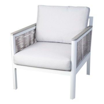 "Сан Ремо" кресло плетеное из роупа садовое, каркас алюминий белый, роуп бежевый, ткань бежевая