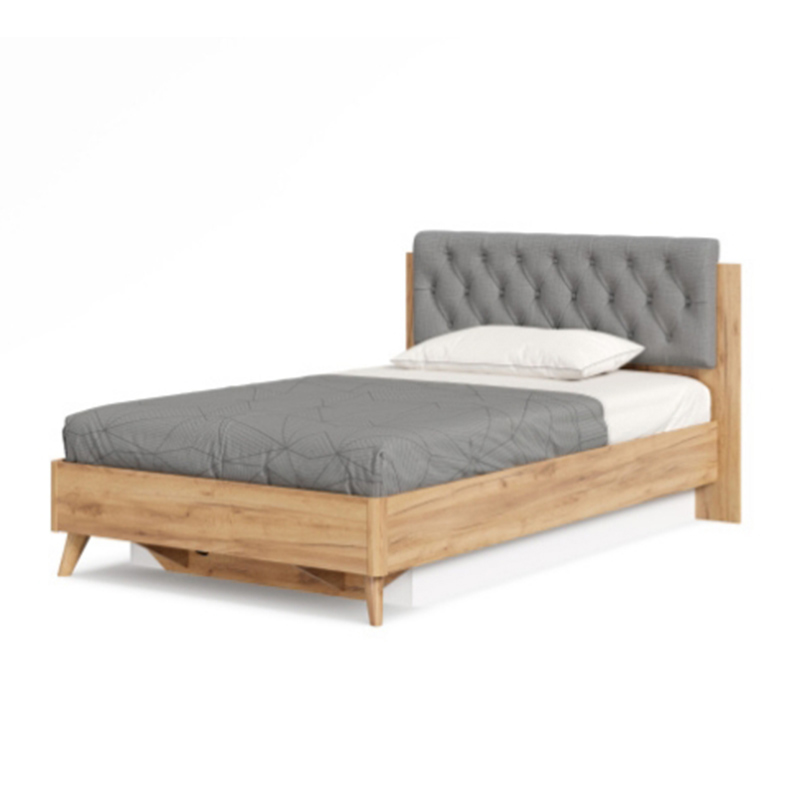 Марта-2 Кровать 1200 (с ПМ и мягкой накладкой, каретная стежка Capri 24) (Дуб Золотой/Серый)
