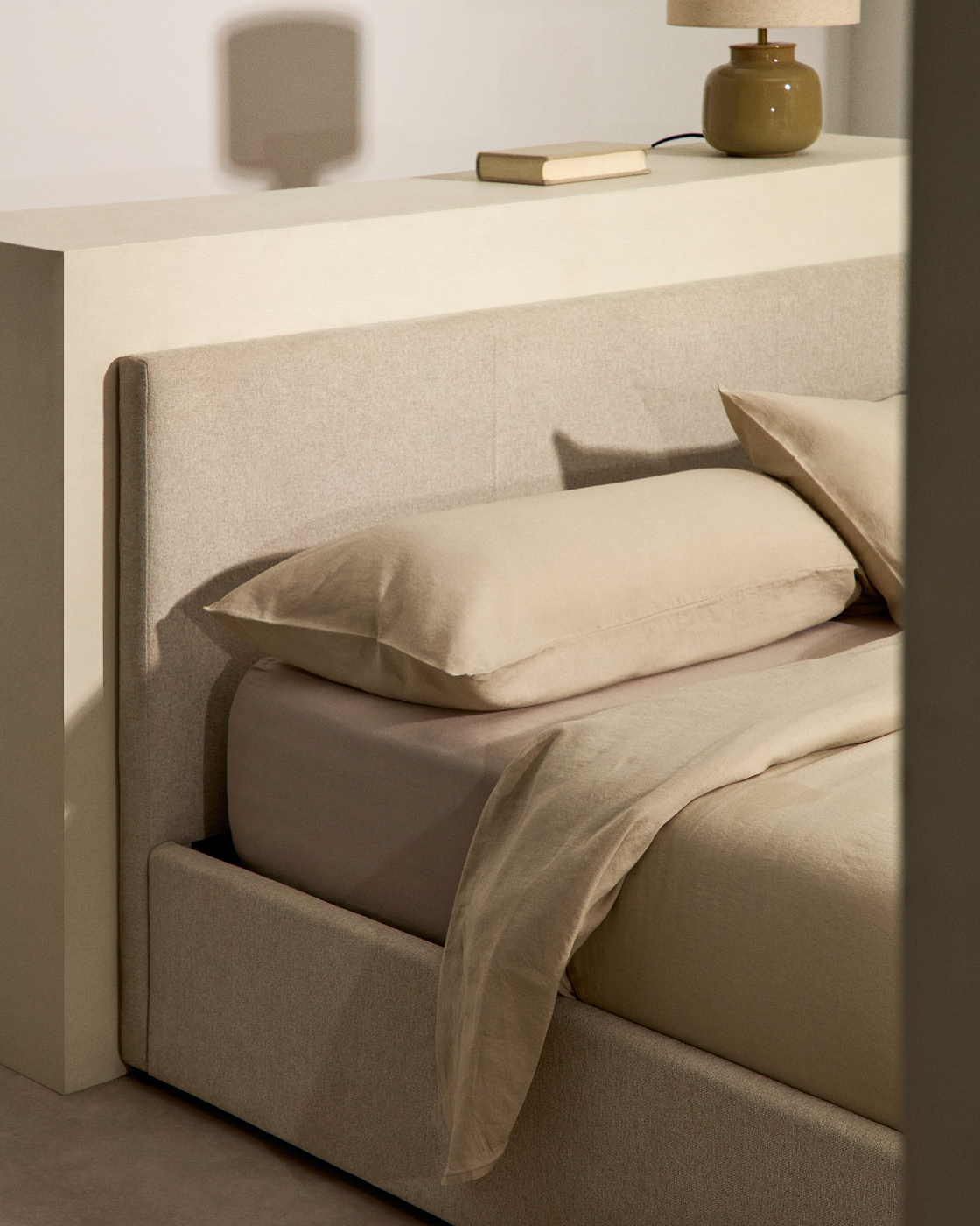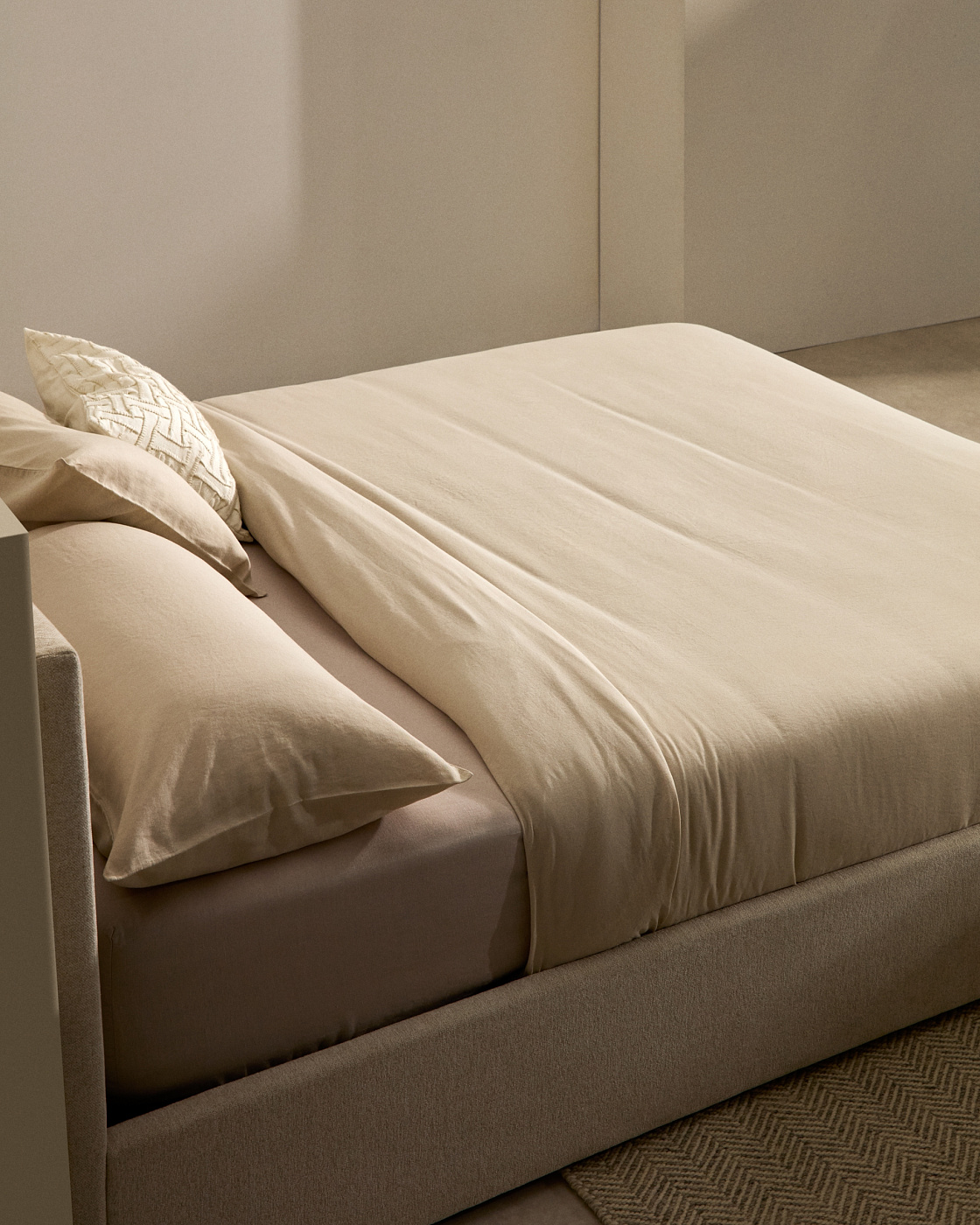 Кровать Nahiri бежевого цвета из шенилла с ящиком для хранения 150 x 200 см