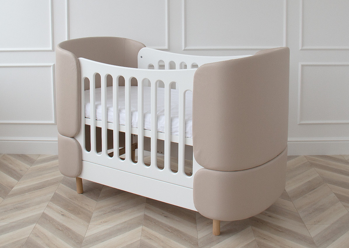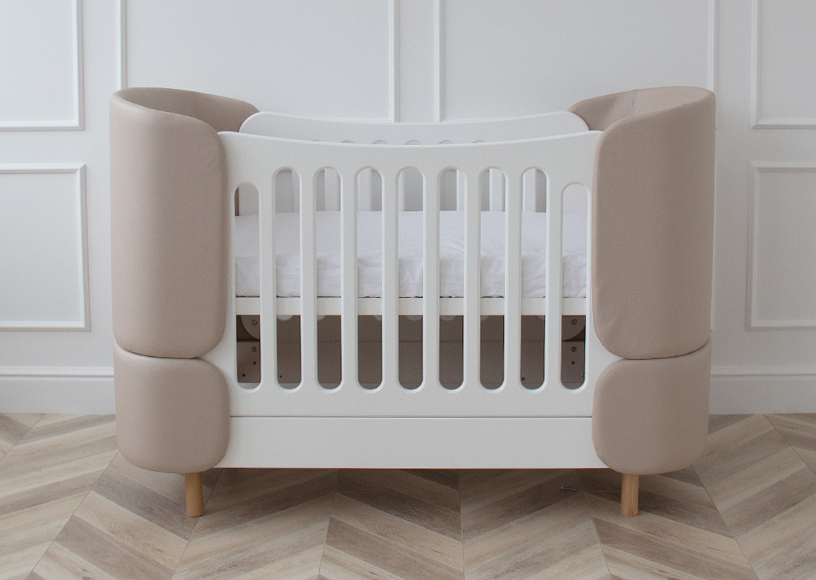 Запросить индивидуальное предложениеКроватка-трансформер KIDI Soft с мягкими спинками из экокожи имеет увеличенный размер спального места, что позволяет использовать кроватку даже в базовой комплектации до 4 лет