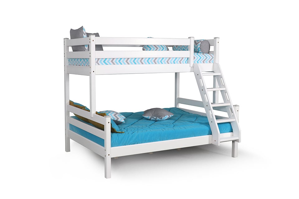Запросить индивидуальное предложениеПродуманная конструкция и качественные материалы делают двухъярусную кровать Адель отличным выбором для двух детей, живущих в одной комнате. Модель оснащена бортиком безопасности и наклонной лестницей для легкого доступа к верхнему уровню. Увеличенное спальное место нижнего яруса подходит для подростка, чей вес не превышает 70 кг. Верхнее основание имеет вид гнутых ламелей, нижнее представлено опорными брусками с уложенным поверх них настилом из ХДФ. Массив сосны подвергнут тщательной шлифовке и покрыт безопасным лаком на водной основе.