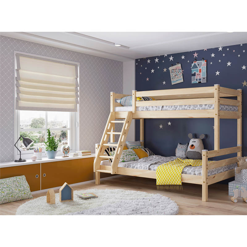 Запросить индивидуальное предложениеПродуманная конструкция и качественные материалы делают двухъярусную кровать Адель отличным выбором для двух детей, живущих в одной комнате. Модель оснащена бортиком безопасности и наклонной лестницей для легкого доступа к верхнему уровню. Увеличенное спальное место нижнего яруса подходит для подростка, чей вес не превышает 70 кг. Верхнее основание имеет вид гнутых ламелей, нижнее представлено опорными брусками с уложенным поверх них настилом из ХДФ. Массив сосны подвергнут тщательной шлифовке и покрыт безопасным лаком на водной основе.