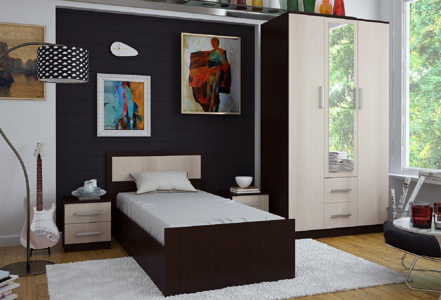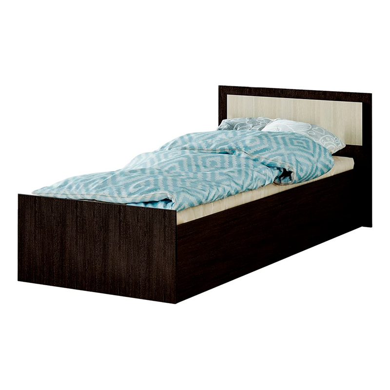 Запросить индивидуальное предложениеОдноспальная кровать 90х200 Фиеста Light в цвете венге / лоредо с проложками ДСП. Контрастное сочетание цветов венге и лоредо.