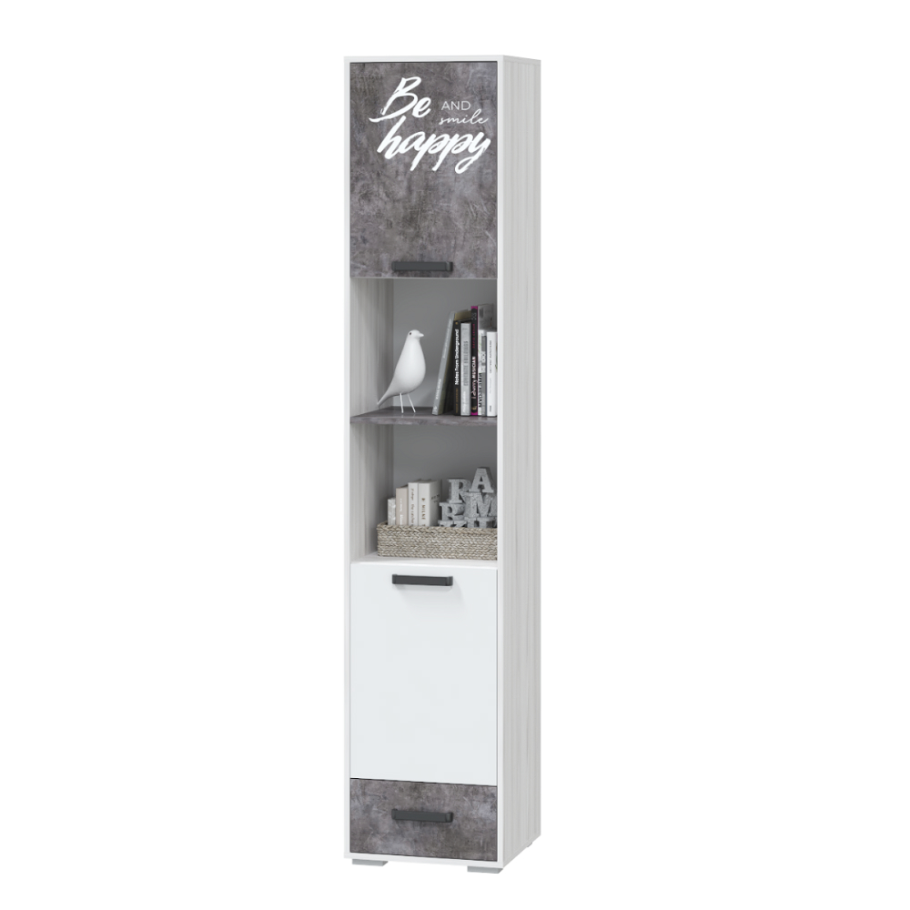Навесной шкаф шириной 852 мм с откидным фасадом отлично подойдет для хранение книг и учебных материалов.
