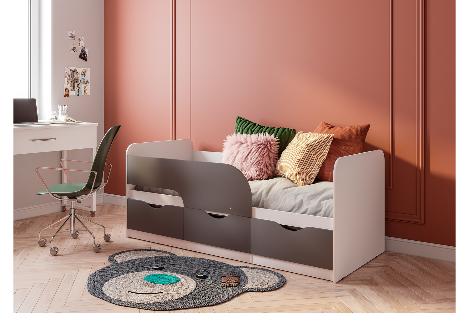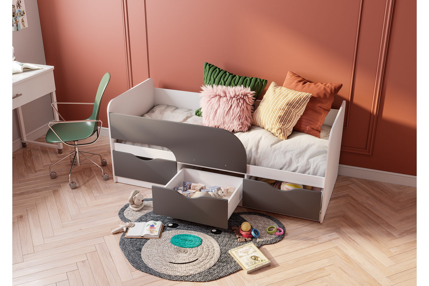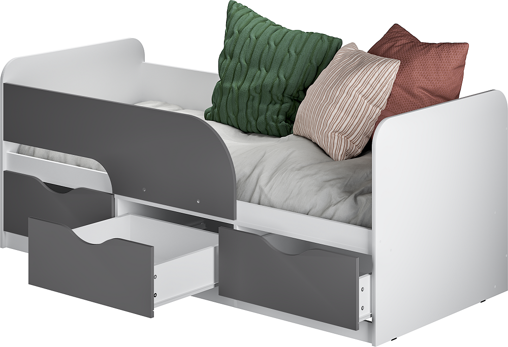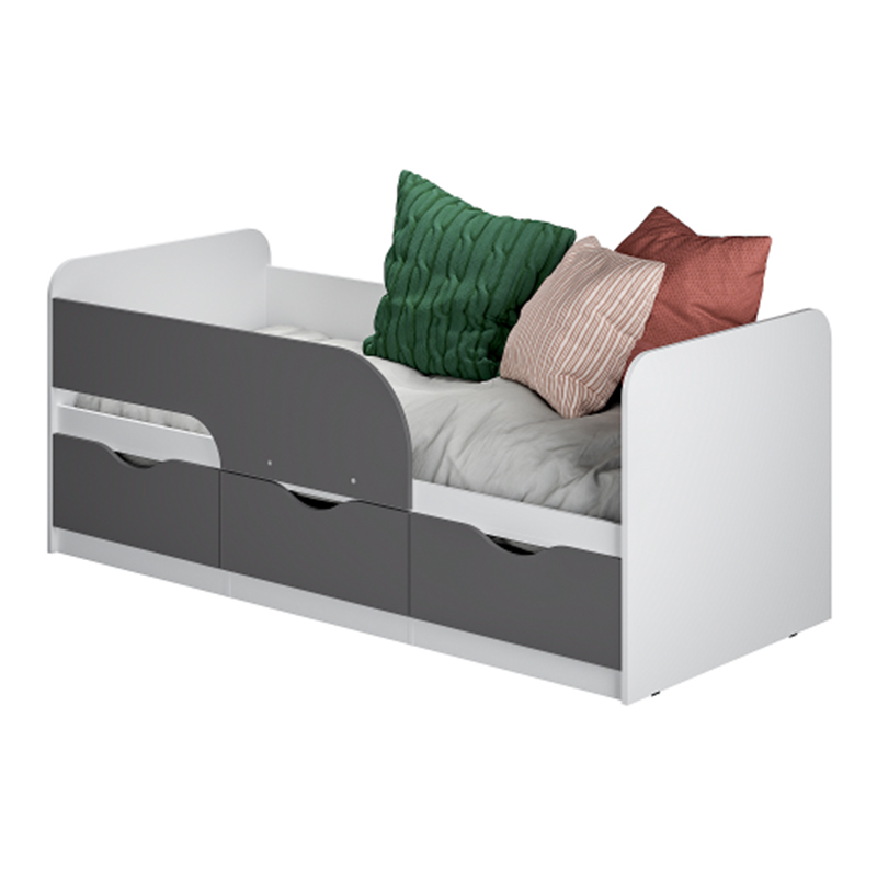 Детская кровать 0,9 м Стандарт КР-22 NEW, Белый;Серый