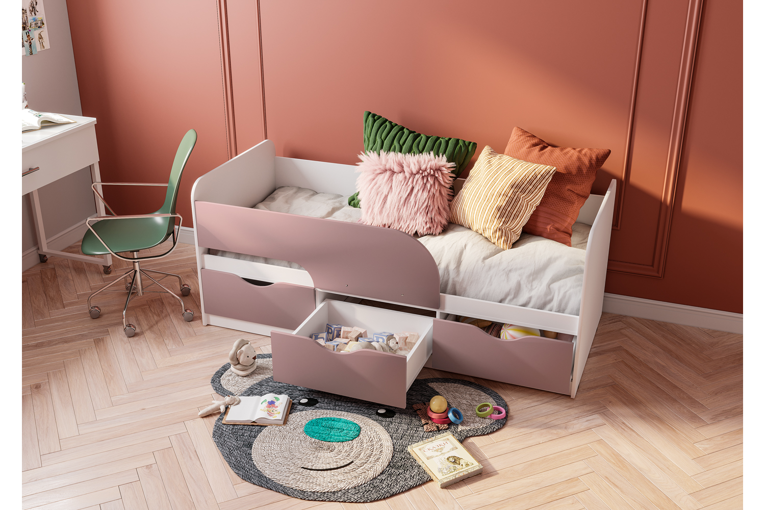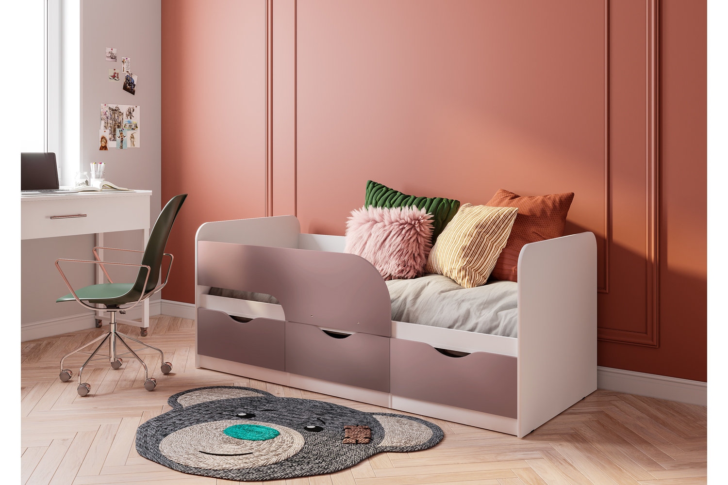 Детская кровать 0,9 м Стандарт КР-22 NEW Белый;Розовый