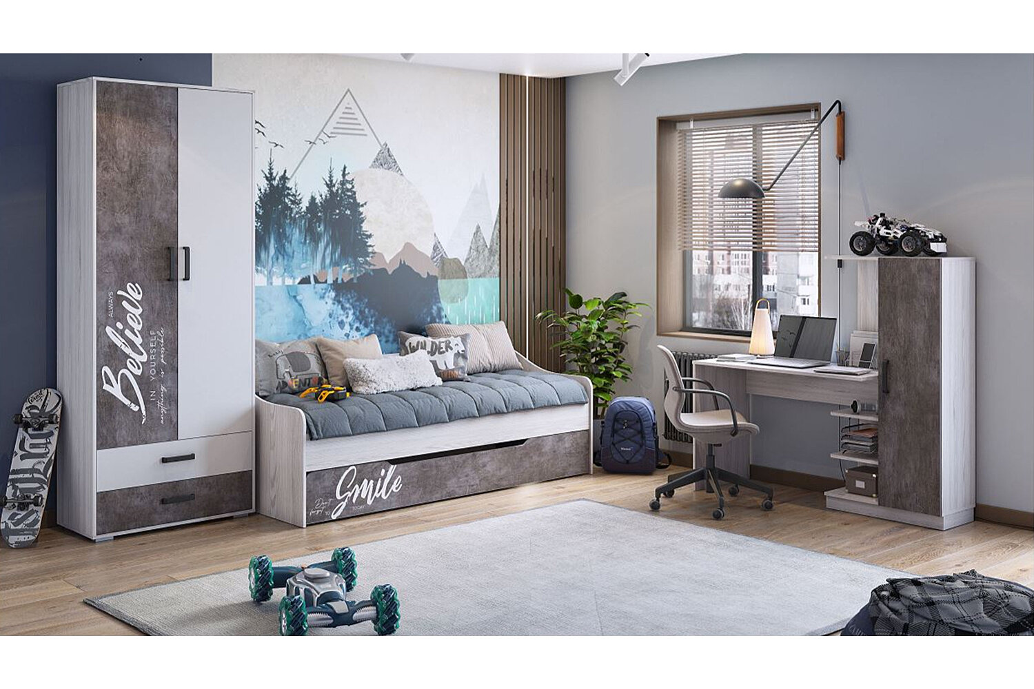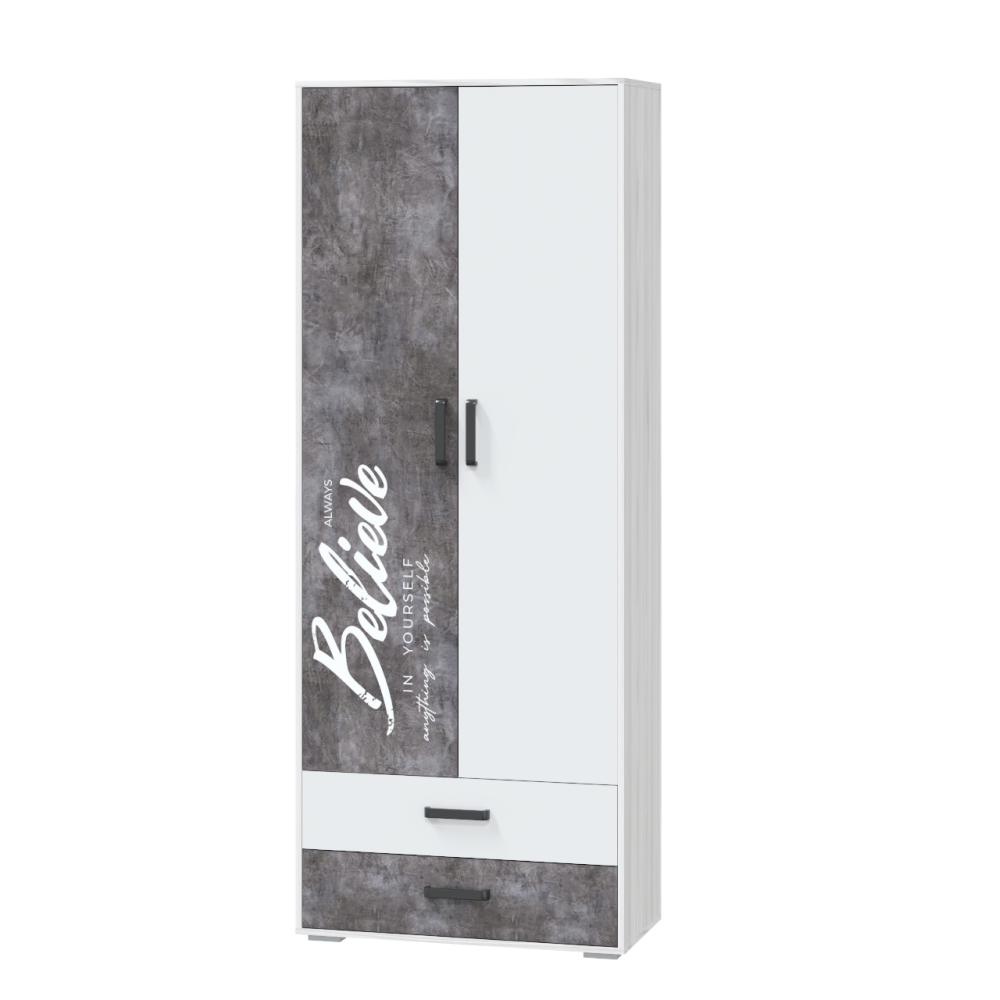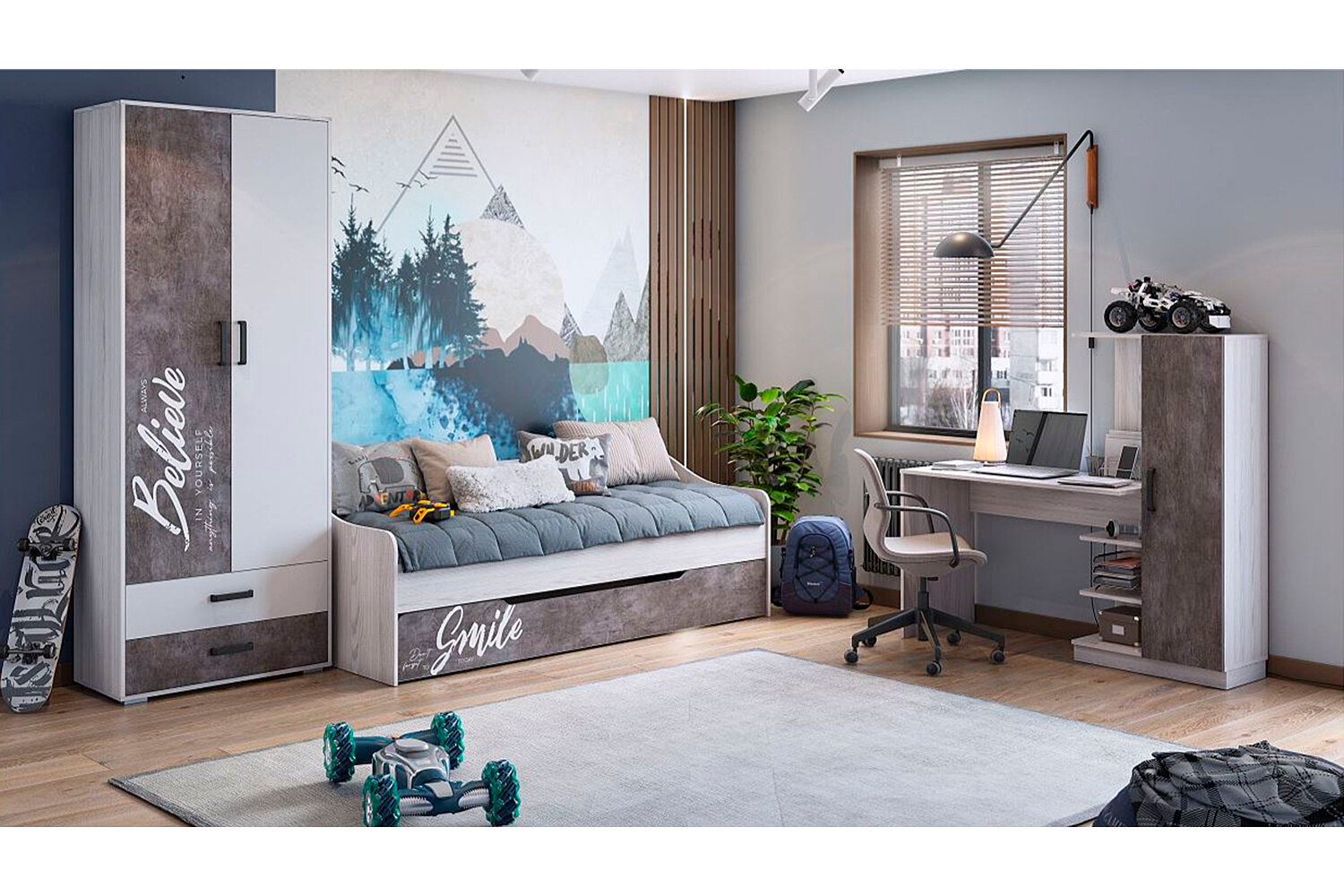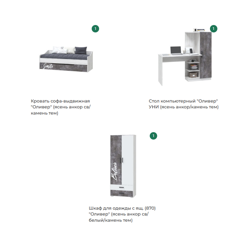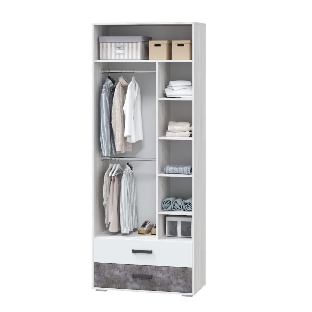 Запросить индивидуальное предложениеШирокий шкаф для одежды и белья Оливер дополнит комнату вашего ребенка и поможет удобно организовать хранение вещей. За распашными дверцами вы найдете отсек с несколькими полками, антресоль и две штанги для одежды, а также шкаф оснащен двумя вместительными выкатными ящиками.