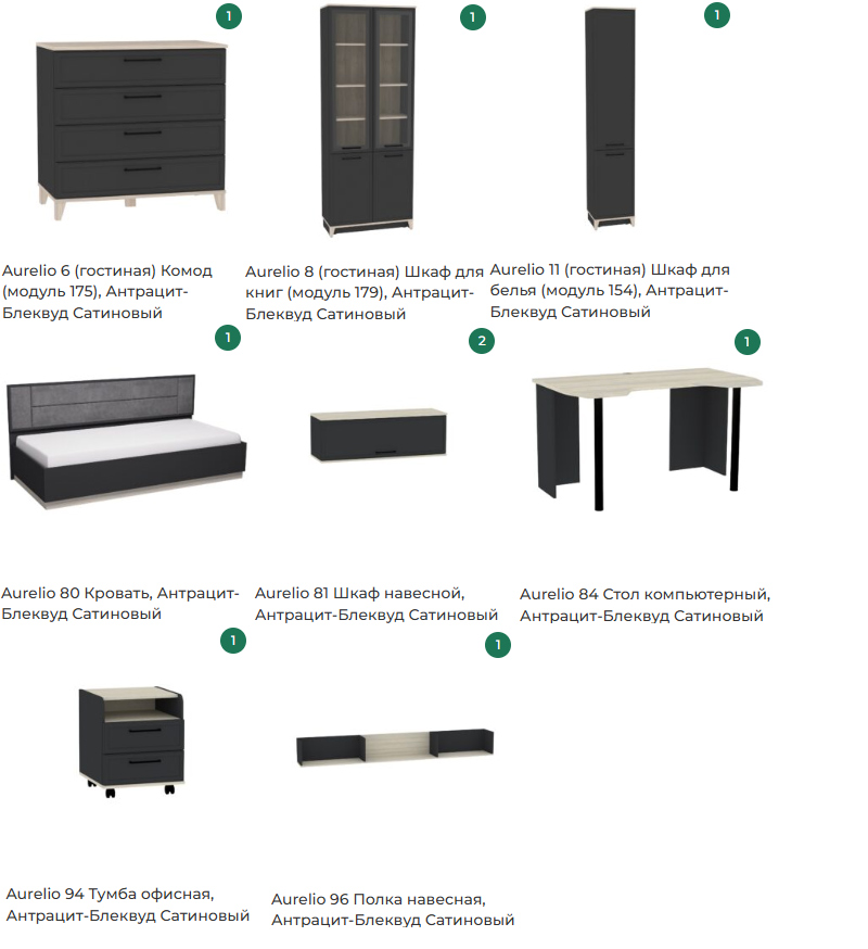 Детская Аурелио. Комплект 3, Антрацит, Блеквуд сатиновый