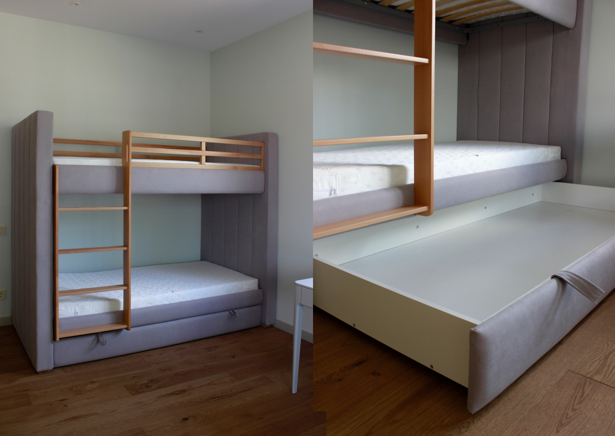 Запросить индивидуальное предложениеМягкая уютная двухъярусная кровать Cosy может быть выполнена в различных цветах: бежевый, серый, молочный или розовый.