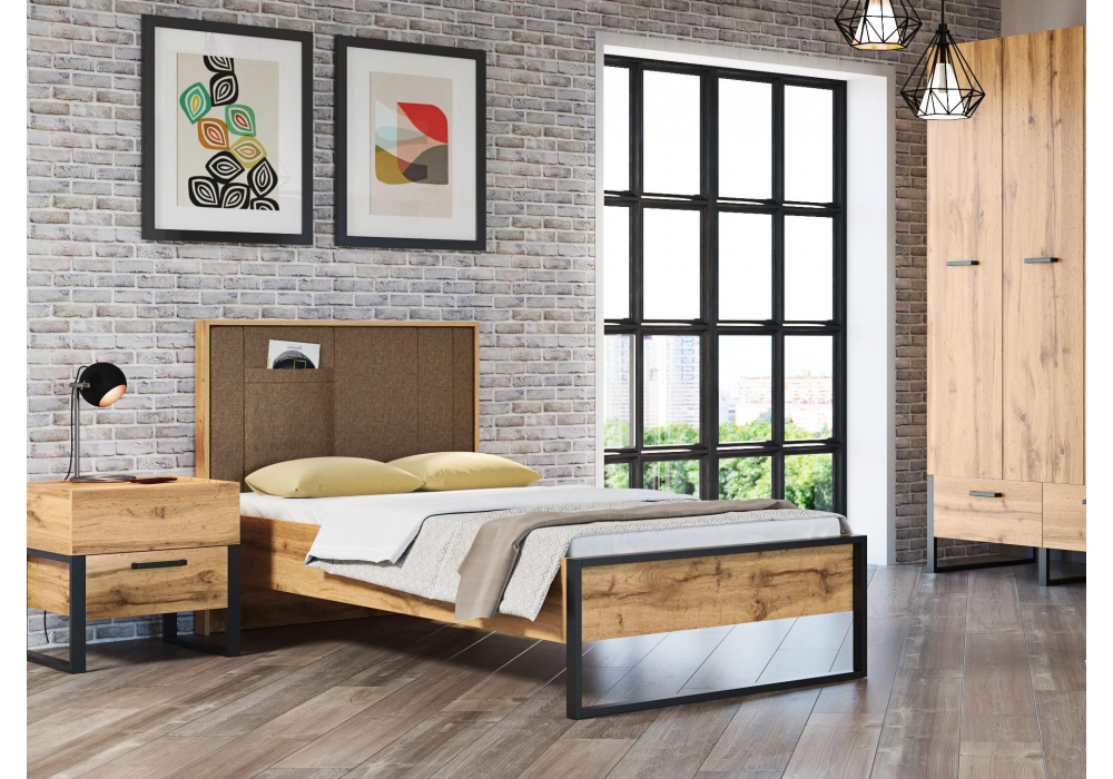 Детская кровать Iris 90х200 металл дуб вотан / черный муар