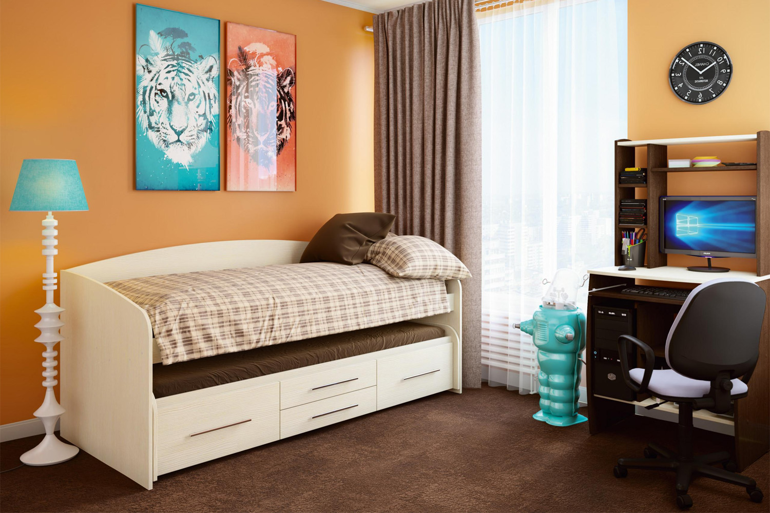 Запросить индивидуальное предложениеДвухъяруснаякровать Адель-5 имеет весьма необычную компоновку. У неё выдвижное нижнее спальное место, благодаря чему общая высота кровати составляет всего 66 см. Нижний блок оснащён двумя большими выдвижными ящиками, а так же одним малым выдвижным ящиком посередине для постельных принадлежностей, а также колёсиками, поэтому для его выдвигания вам не потребуется значительных усилий. Кровать оборудована боковинами и задней спинкой.