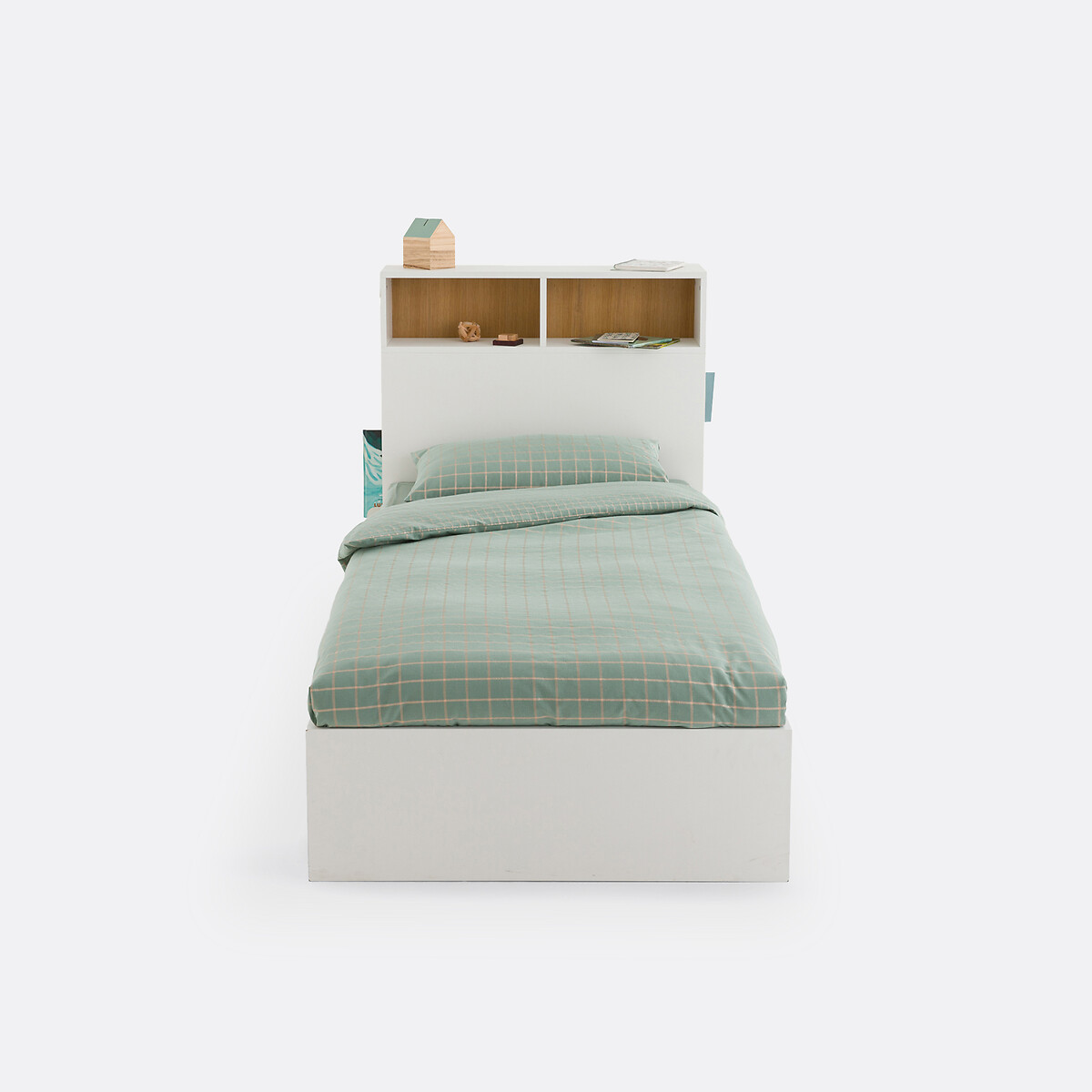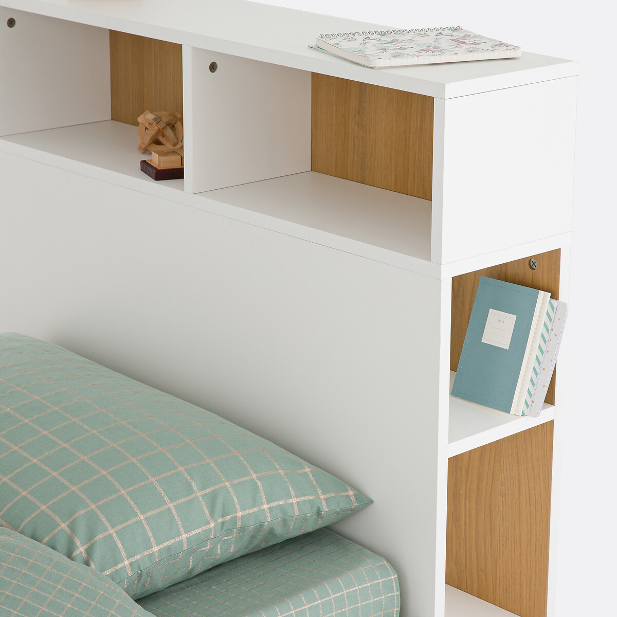 Запросить индивидуальное предложениеОписание кровати BIFACE: Изголовье с местом для хранения вещей: 2 большие центральные ниши, 3 маленькие ниши с каждой стороны
