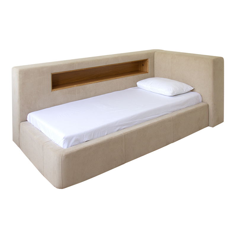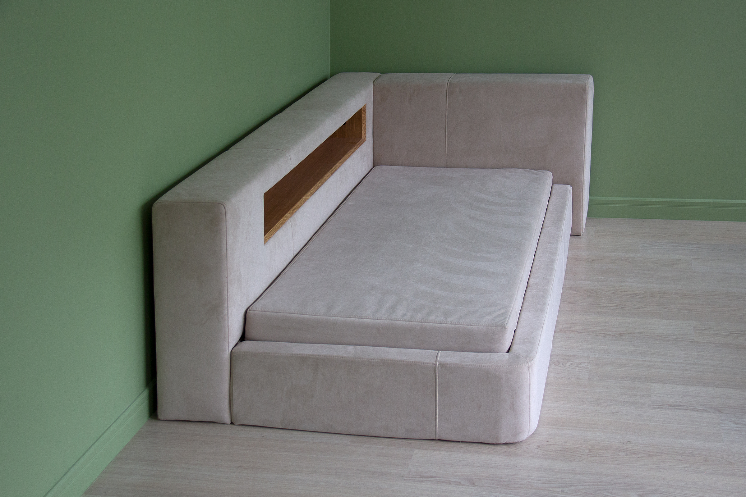 Кровать Cube c нишей L антивандальная ткань (молочный)