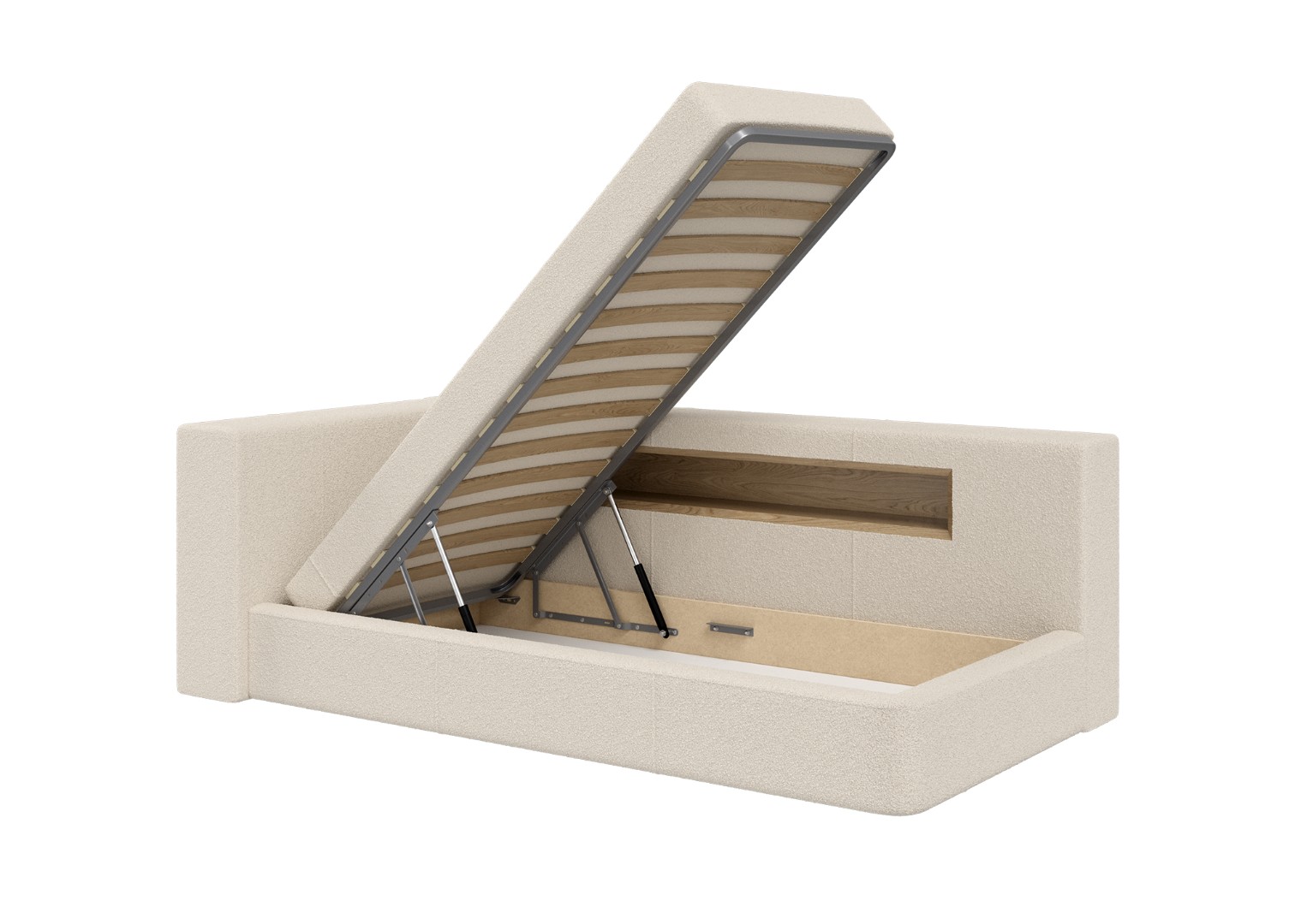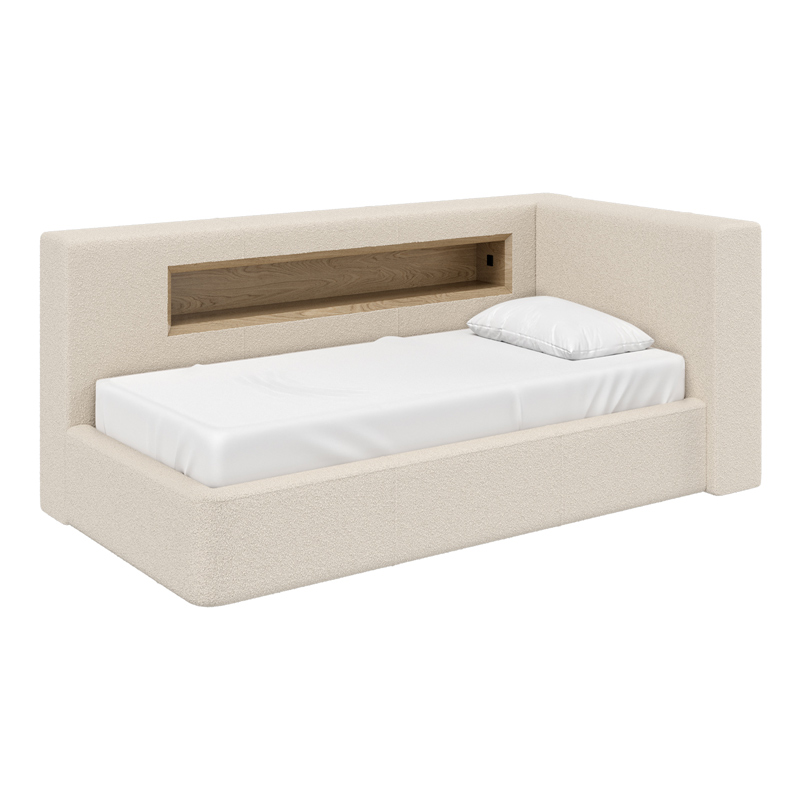 Диван-кровать Cube c нишей L (молочный, букле)