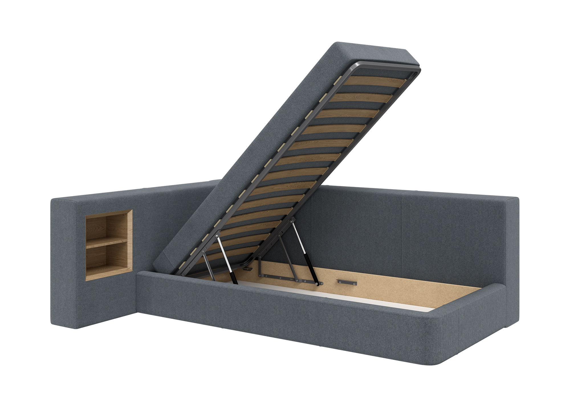 Оснащена подъёмным механизмом, местом для хранения, нишей и розеткой.