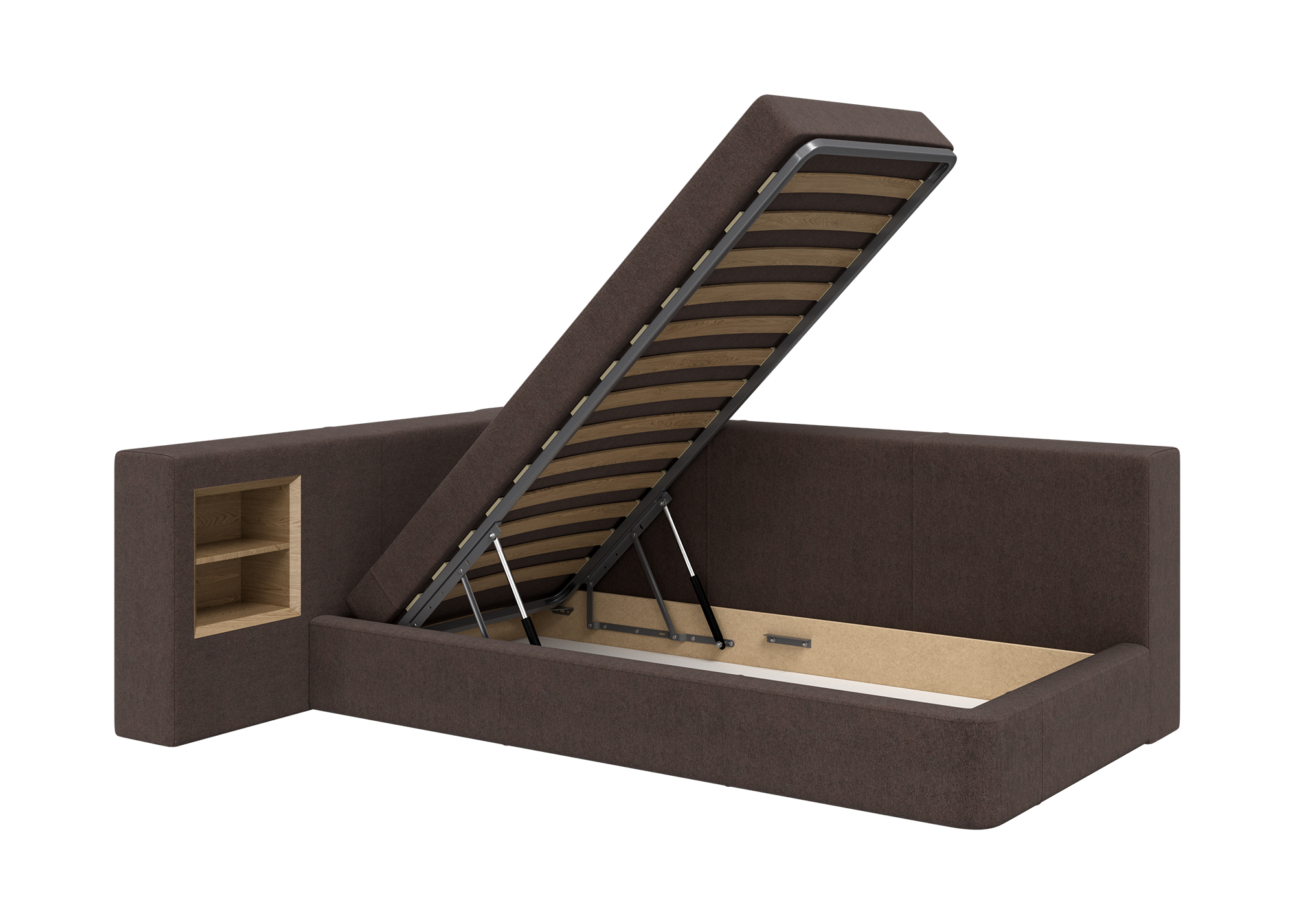 Оснащена подъёмным механизмом, местом для хранения, нишей и розеткой.