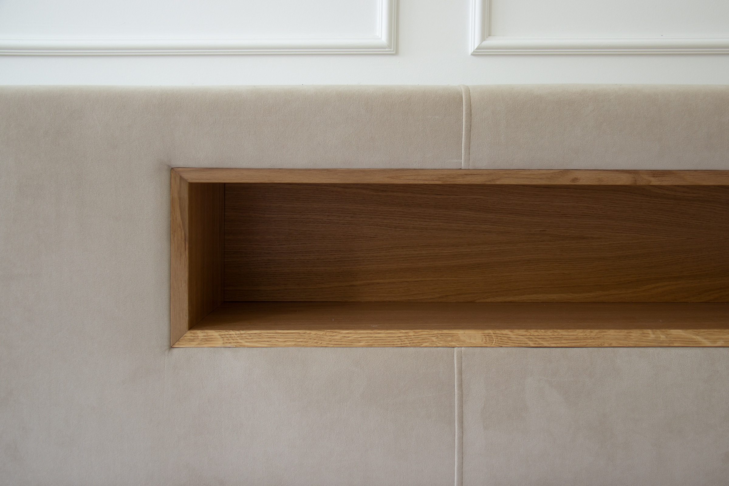 Оснащена подъёмным механизмом, местом для хранения, нишей и розеткой.