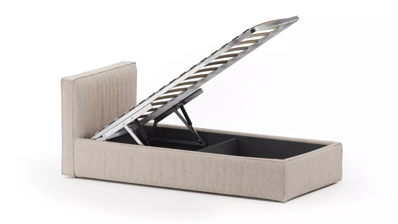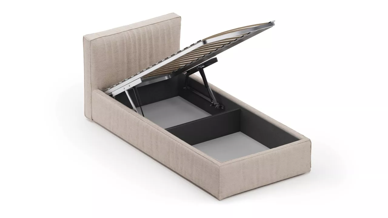 По желанию комплектуется прочным и качественным подъемным механизмом, благодаря ему внутри можно разместить два просторных отсека для хранения постельного белья, подушек и пледов, что поможет поддерживать порядок в комнате и освободит пространство для игр. Имеет крепкое металлическое ортопедическое основание с березовыми ламелями.