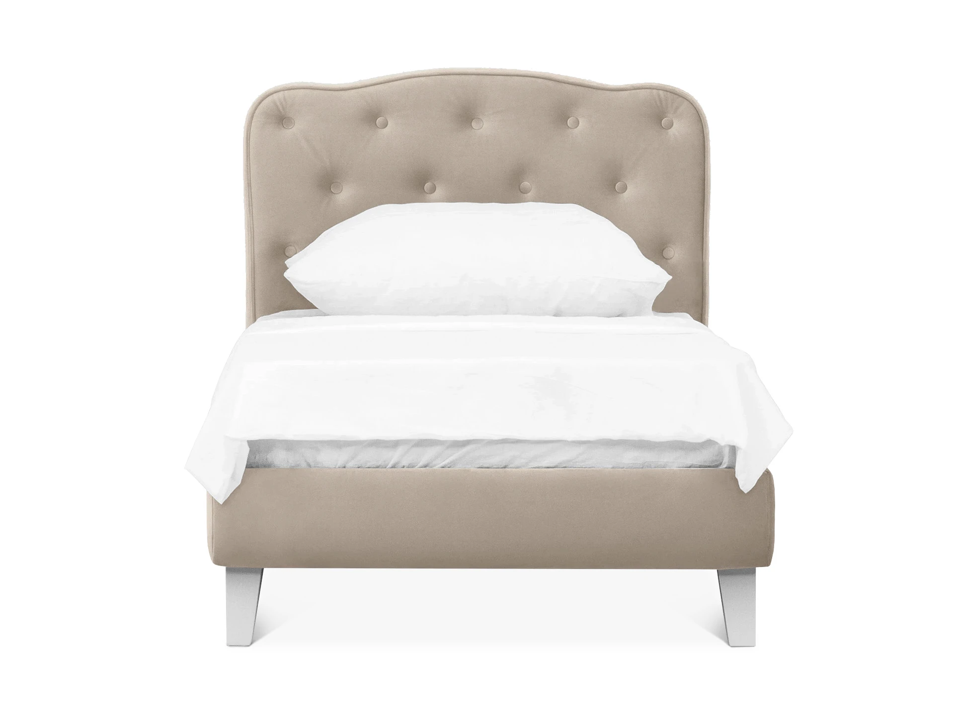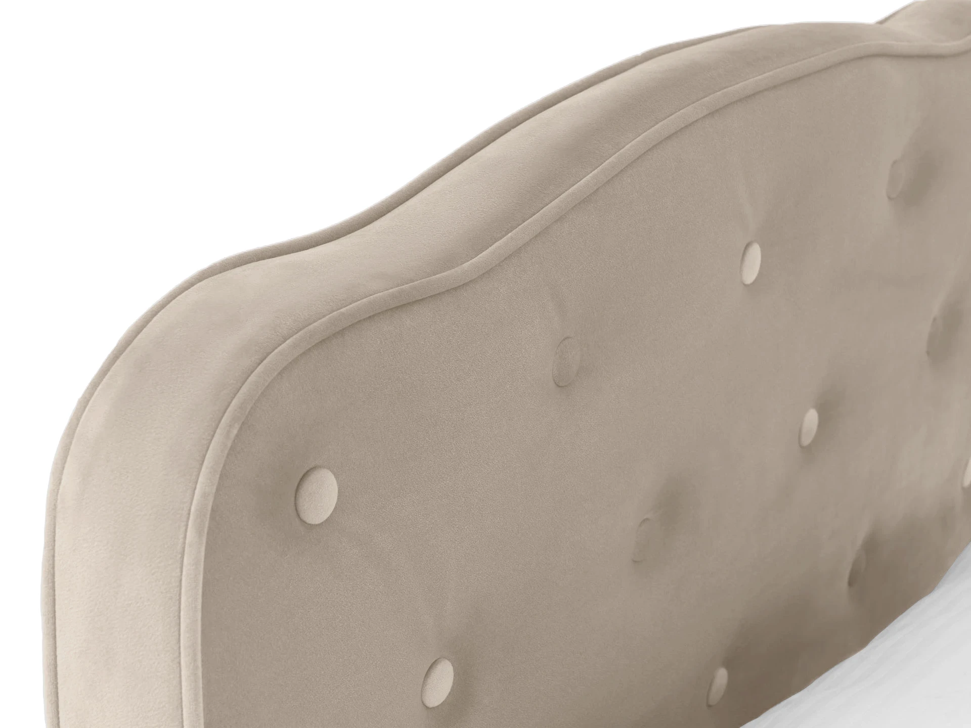 Запросить индивидуальное предложениеЛинейка Candy — кровати для детей с высоким изголовьем и мягкими царгами. Изящное исполнение поможет воссоздать в интерьере картинку из сказки. Комната принцессы или спальня феи — Candy воплотит любую мечту! Воздушная и невесомая благодаря ножкам из массива дерева. Смотрится аккуратно и эстетично. Элегантное фигурное изголовье украшено текстильными пуговицами, напоминающими каретную стяжку «капитоне».