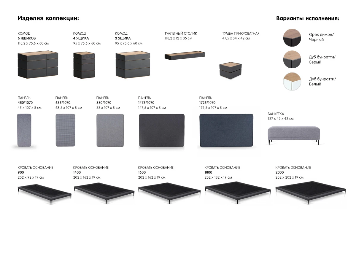 Кровать можно персонализировать при помощи навесных панелей 5 конфигураций. Имеют разную ширину и выполняются в любых цветовых сочетаниях. Крепятся к стене с помощью металлических навесов с регулировкой по высоте. Панели комбинируются по-разному и адаптируются к спальням любых размеров. Можно оформить как традиционное высокое изголовье, так и большой «мягкий уголок». Который сделает вашу территорию идеального сна уютнее, теплее, а также подарит чувство защищенности и расслабления. Кровать Licata органично впишется в пространства разной стилистики от современной классики до минимализма и поможет вам максимально насладиться домашним комфортом.