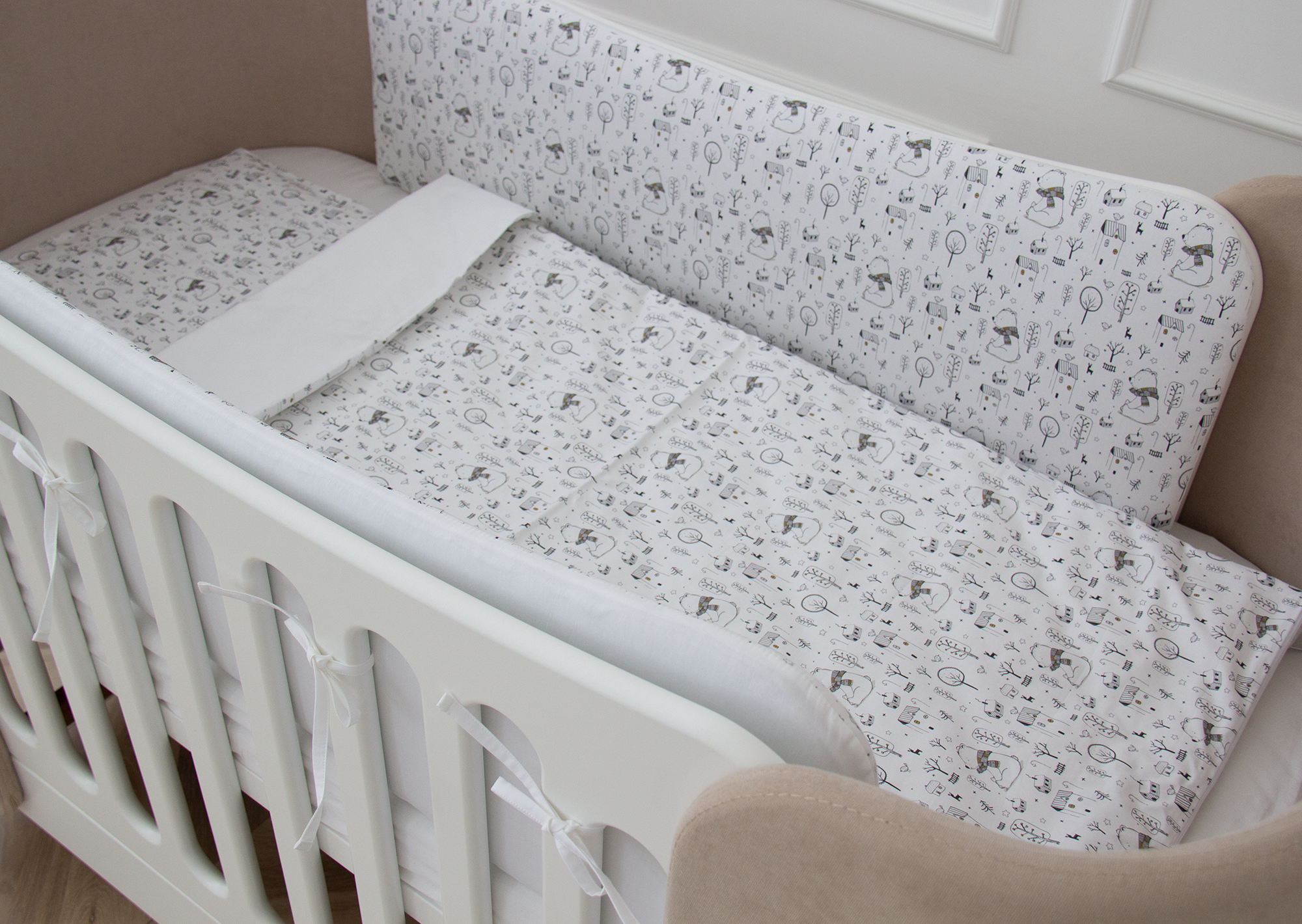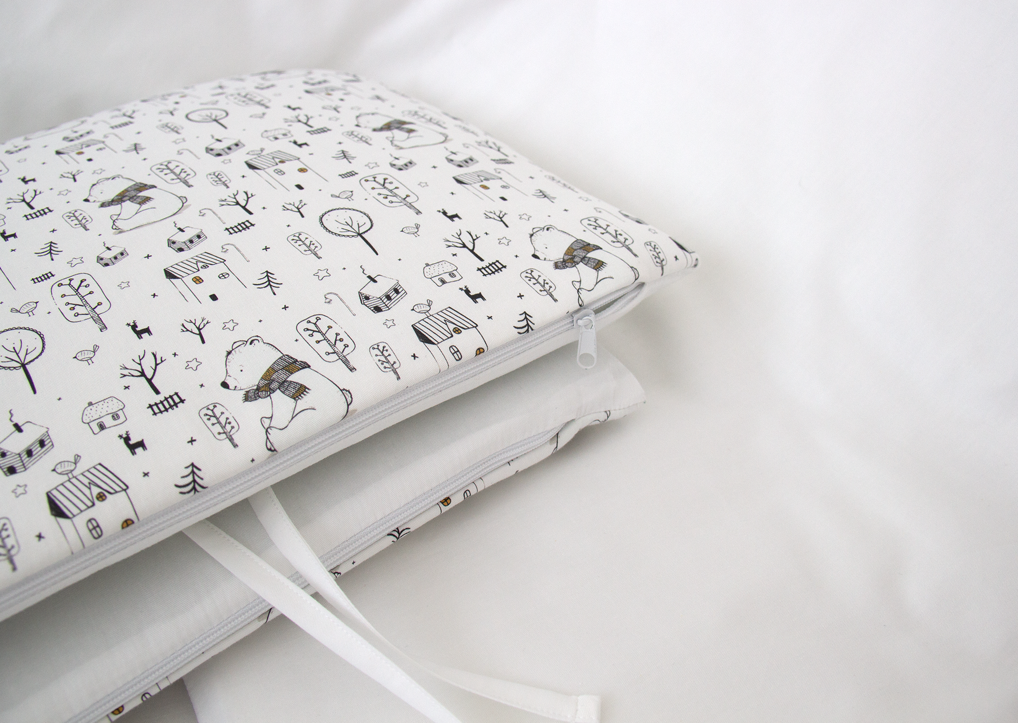 В бортики вшита скрытая молния, поэтому их удобно стирать, предварительно вынув наполнитель.