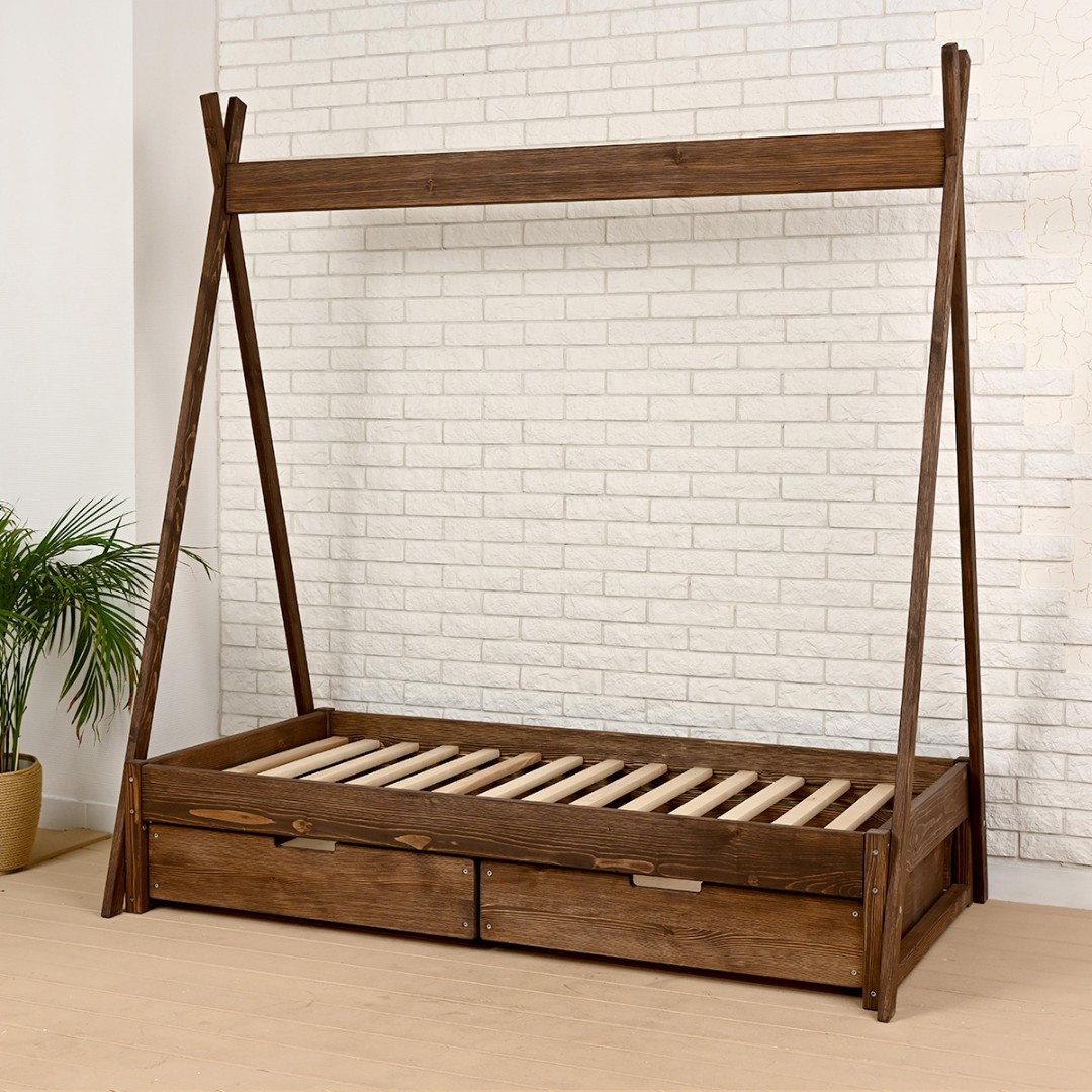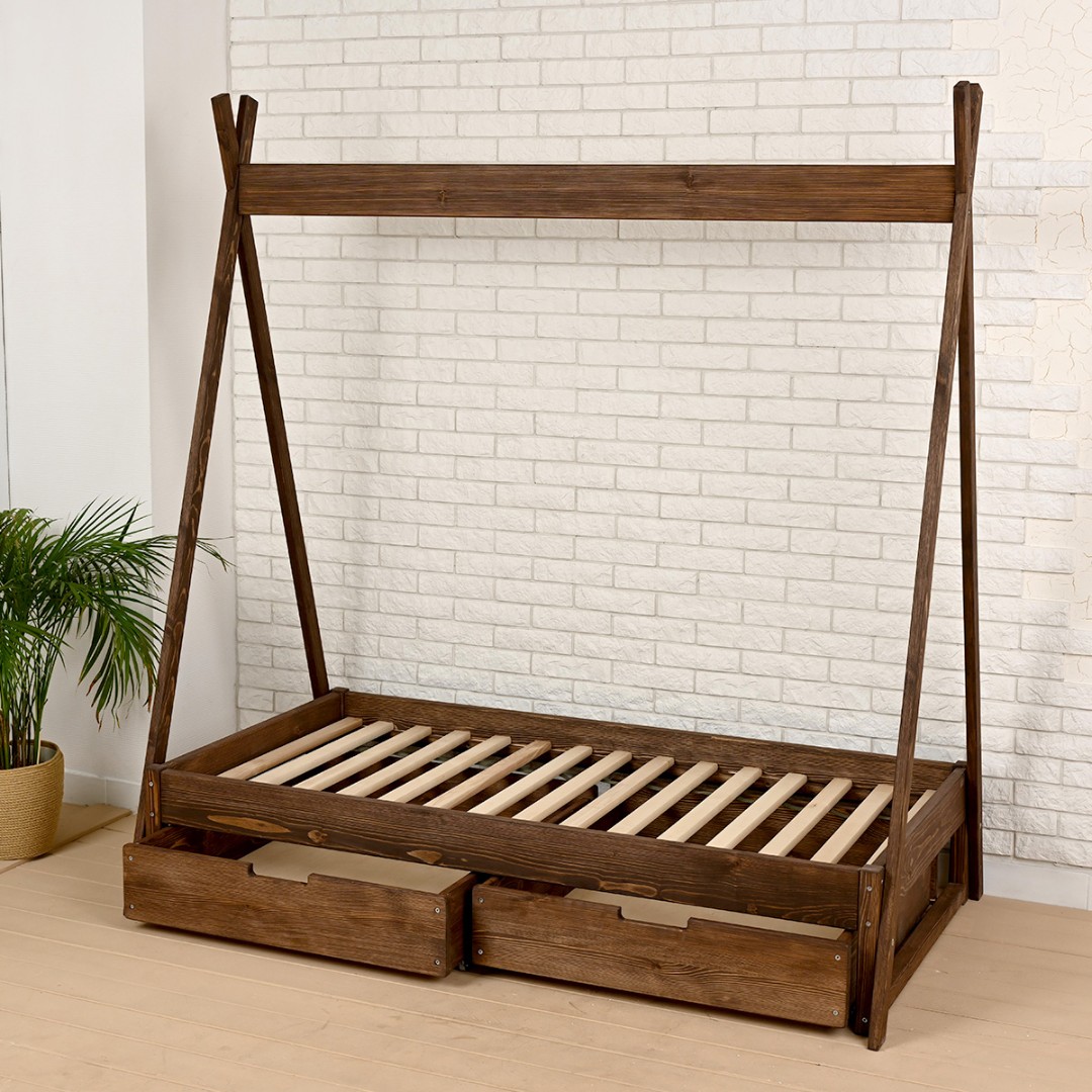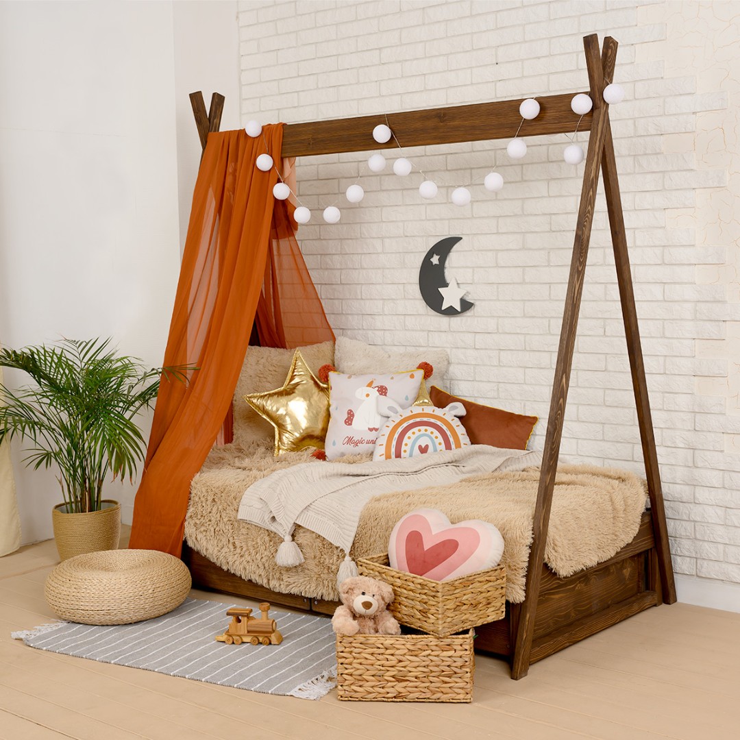 Запросить индивидуальное предложениеКровать «Вигвам» исполнит детскую мечту — превратить в волшебный шалаш заядлого путешественника и искателя приключений добавив декор из наших коллекций.