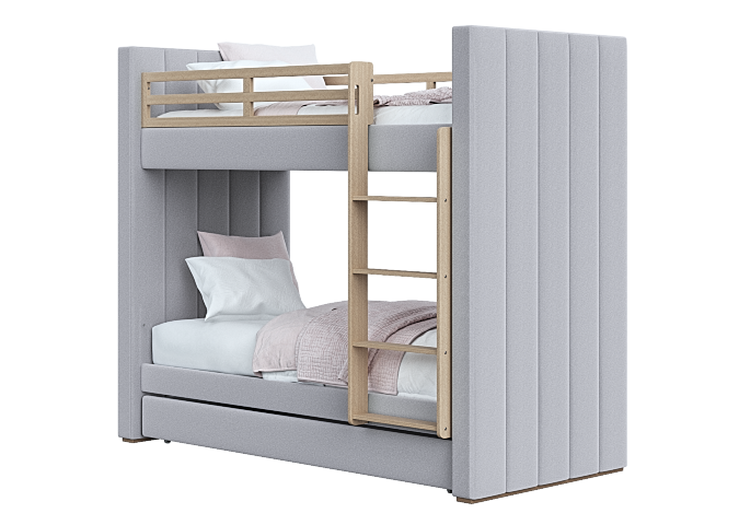 Запросить индивидуальное предложениеМягкая уютная двухъярусная кровать Cosy может быть выполнена в различных цветах: бежевый, серый, бирюзовый, розовый или голубой.