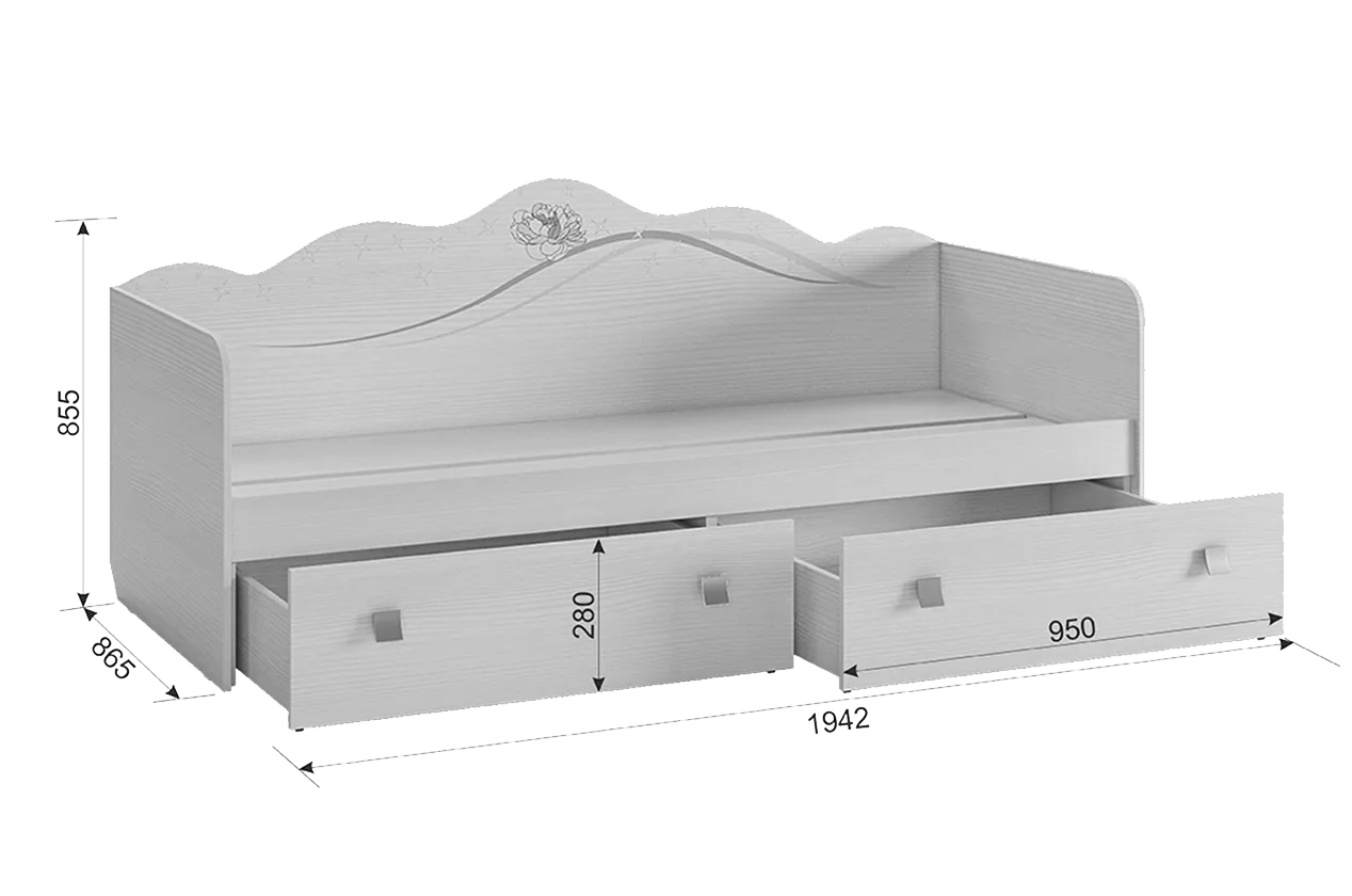 Состоит из: спального места и 2-х выдвижных ящиков. Стильная и модная софа детской «Фэнтези» - обрадует каждого ребенка. Удобное спальное место и 2-а больших выдвижных ящика для хранения постельного белья и игрушек. Необычный принтерный рисунок на фасадах выдержан в общем стилистическом решении. Рисунок устойчив к истиранию и ультрафиолету. Максимальная распределенная нагрузка до 100 кг. Рекомендуем комплектовать: с остальными модулями детской «Фэнтези». Рекомендуемый размер матраса 800х1900. Комплектуется дополнительным модулем Ограничитель для кровати.