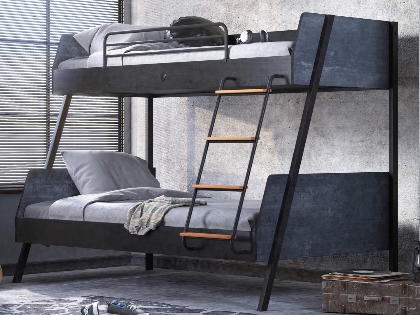 Запросить индивидуальное предложениеДвухъярусная кровать Dark Metal представляет собой удобную, красивую, современную кровать для детей, которая позволит сэкономить место в детской, увеличив тем самым место для развлечений и передвижений. Кровать Dark Metal универсальная - может собираться как на правую, так и на левую сторону. Второй этаж кровати, на который можно подняться при помощи удобной лестницы, оснащён перегородкой, которая позволит вашему ребёнку чувствовать себя в полной безопасности.