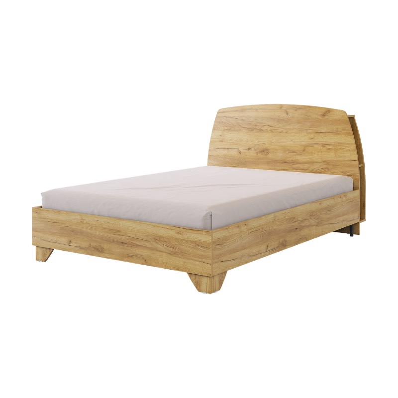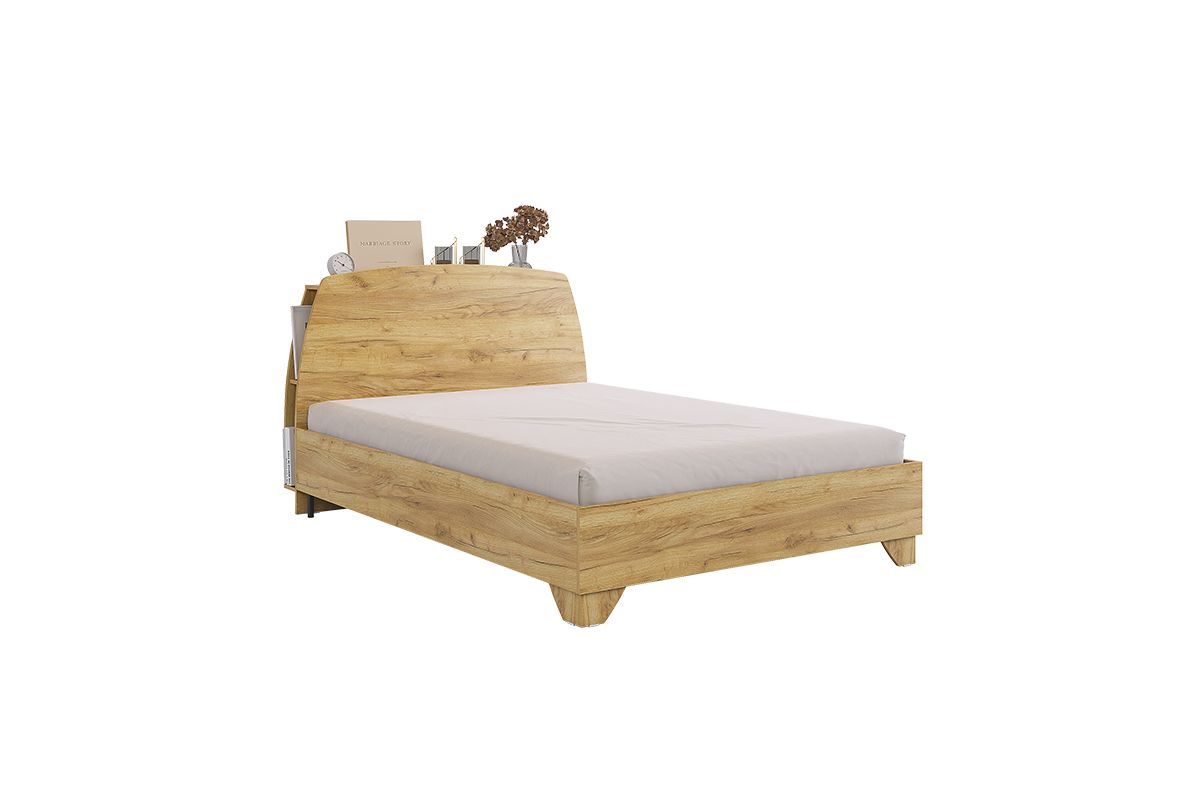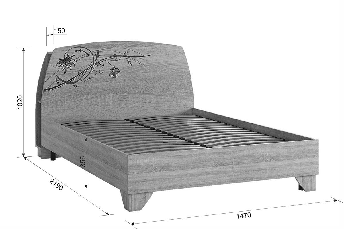Состоит из: каркаса, спинки из ЛДСП, полок за спинкой и основания. Матрас приобретается отдельно. Кровать выполнена в цвете дуб Сонома и имеет основание, что способствует здоровому сну. Книжки, телефон и другие мелочи легко поместятся на полках за спинкой кровати и заменят вам прикроватные тумбы. Спинка кровати украшена современным принтерным рисунком. Рекомендуемый размер матраса 1400х2000.