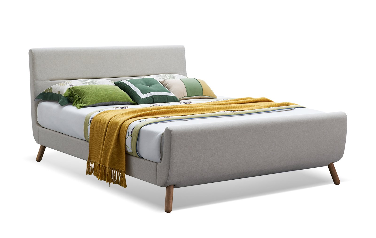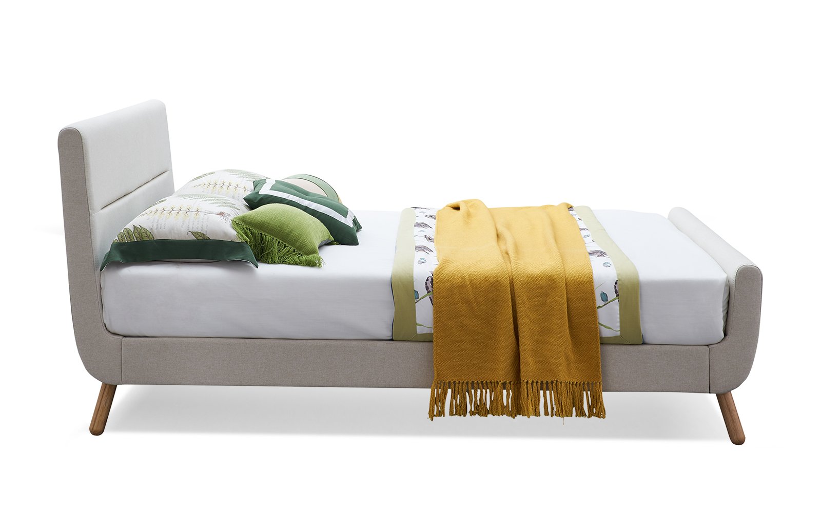 Кровать Borneo (Борнео) размером спального места 140x200 см. Благородный бежевый цвет и предельная простота линий делают эту кровать идеальным решением для тех, кто выбирает сдержанную роскошь. “Изюминка” модели - гармония мягких и достаточно высоких изголовья и изножья. Ножки - светлого дерева. Такая кровать позволит использовать самый разный по цвету и фактуре текстиль, который даст возможность “адаптировать” изделие к ярким и пастельным интерьерам. Такая модель представлена также в других размерах. Составит гармоничный ансамбль с банкеткой Eva. Кровать в стиле Mid Century Modern в мягкой обивке. Основание из дерева, обивка из ткани бежевого цвета (рогожка). Деревянные ножки в стиле 60-х. Благодаря простым формам, нейтральной обивке и отсутствию декоративных излишеств, кровать Borneo подходит для спальни в стиле скандинавский минимализм или для интерьера в стиле ретро.
